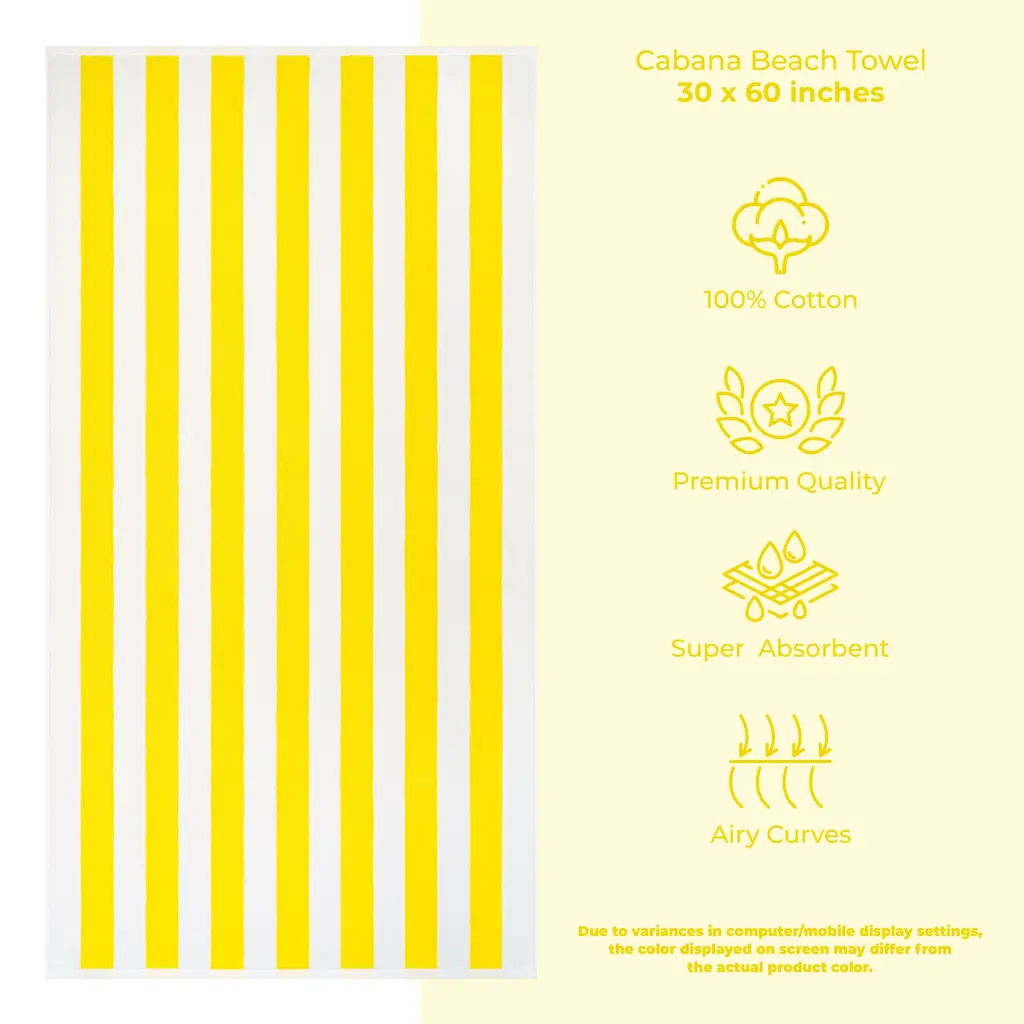 American Soft Linen,100% Cotton 4 Pack Beach Towels, 30 X 60 Cabana Striped Pool Towels - Yellow