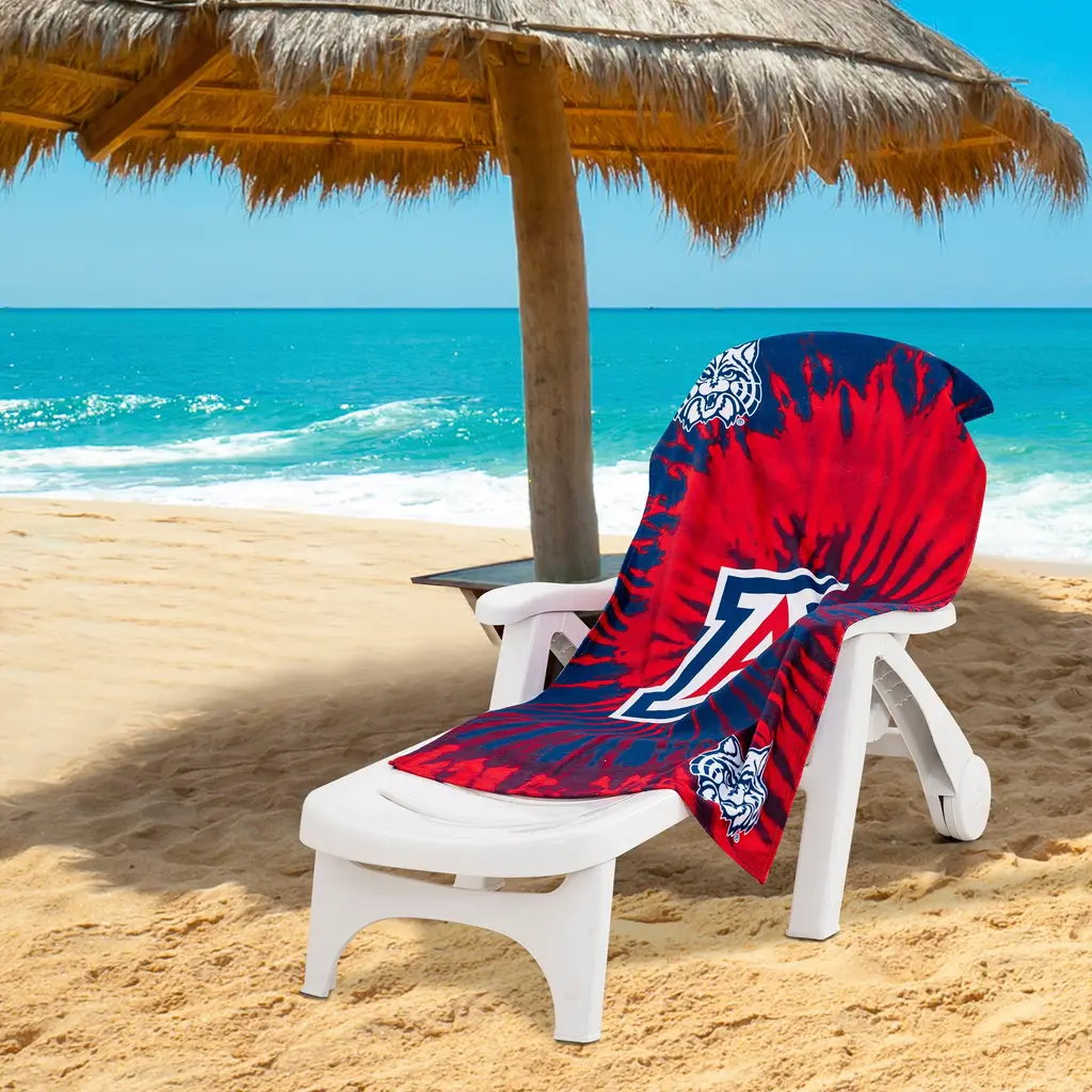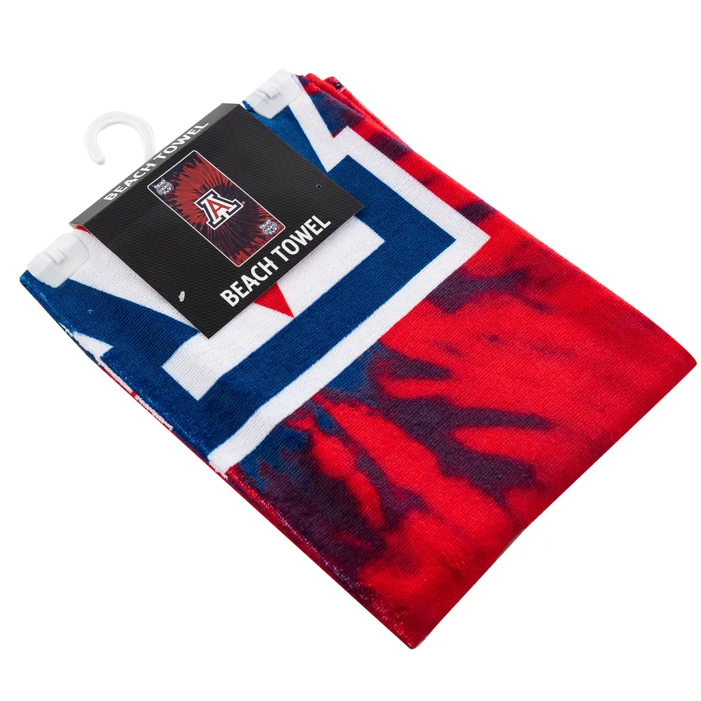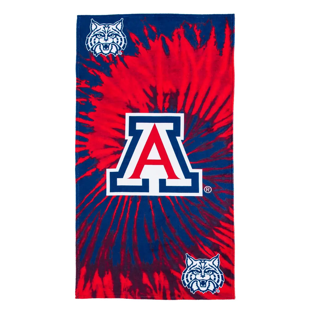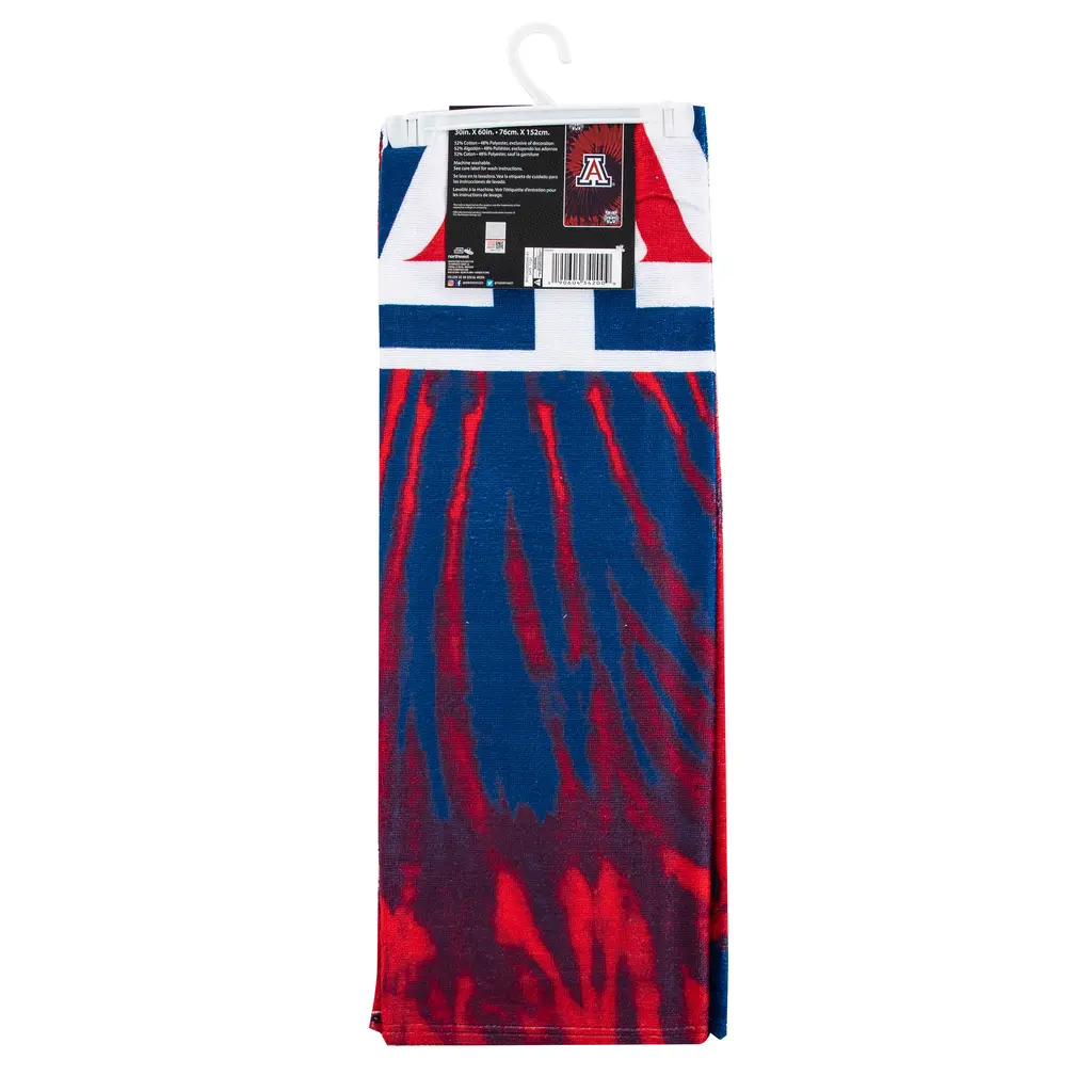 Soak up the sun while lounging on this Officially Licensed NCAA "Psychedelic" Beach Towel by TheNorthwest. Show off your favorite team at the pool or beach with this fun towel. Featuring a college team name and logo in the center of a tie-dye background, this absorbent 30"x 60" towel is the perfect accessory for drying off after a swim. This cotton-poly blend towel is rad!