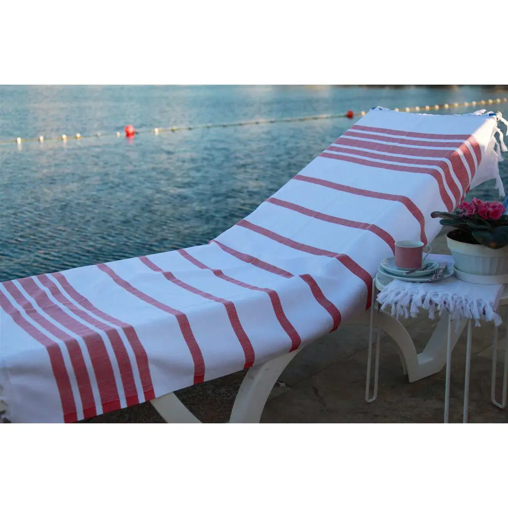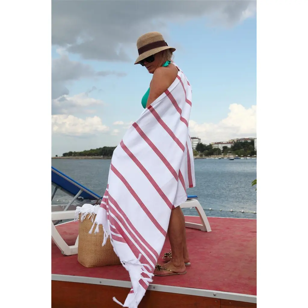Authentic Pestemal Fouta Red And White Bold Stripe Turkish Cotton Bath/ Beach Towel - White/red