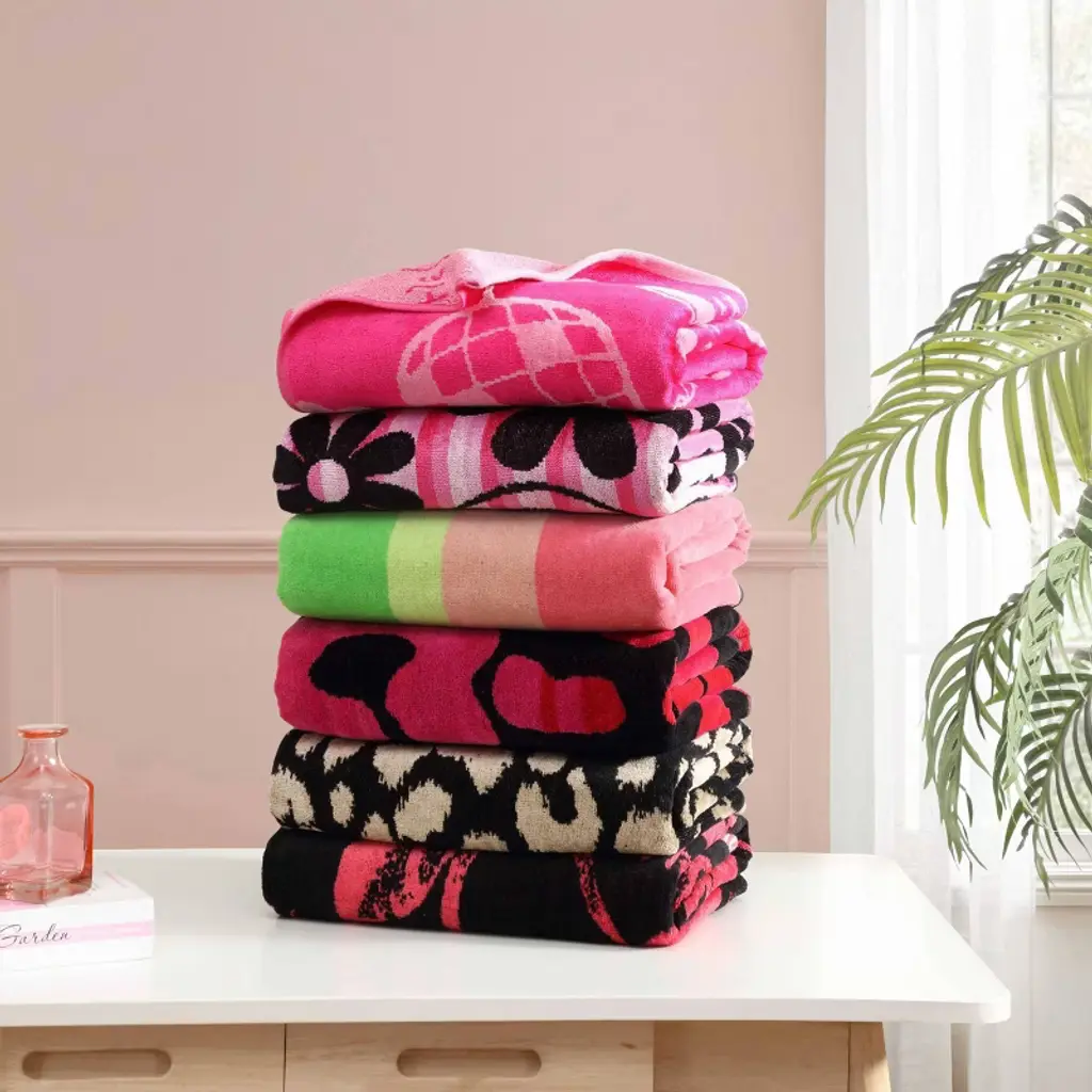 Make a bold statement at the beach or pool with the Betsey Johnson's beach towel. Designed for both style and functionality, this generously sized towel provides a soft and absorbent feel, making it the perfect companion for lounging by the water. Crafted from a premium blend of materials, it offers durability, softness, and a lightweight feel for easy carrying. Measures 36" x 72", and is machine washable for easy care