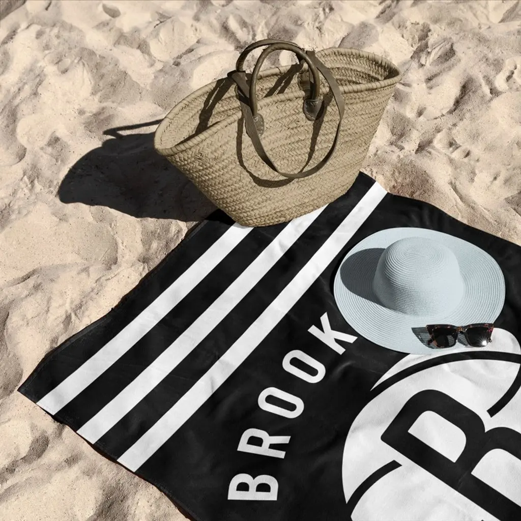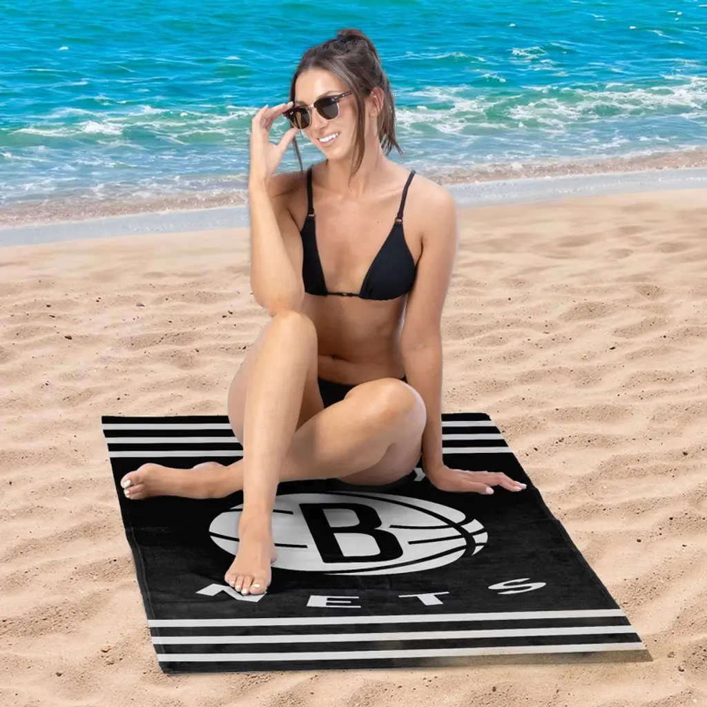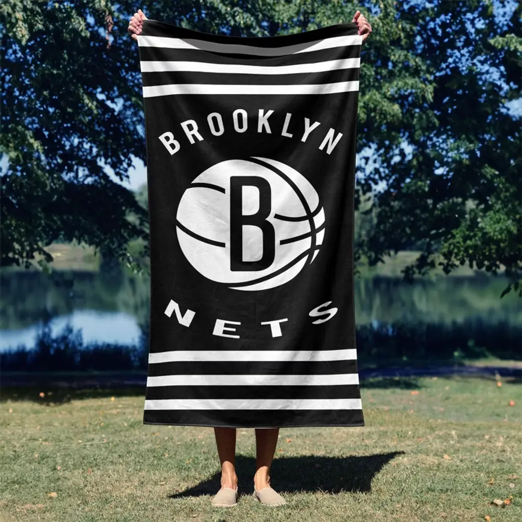 Brooklyn Nets Nba Stripes Beach Towel 30 X 60 Inches