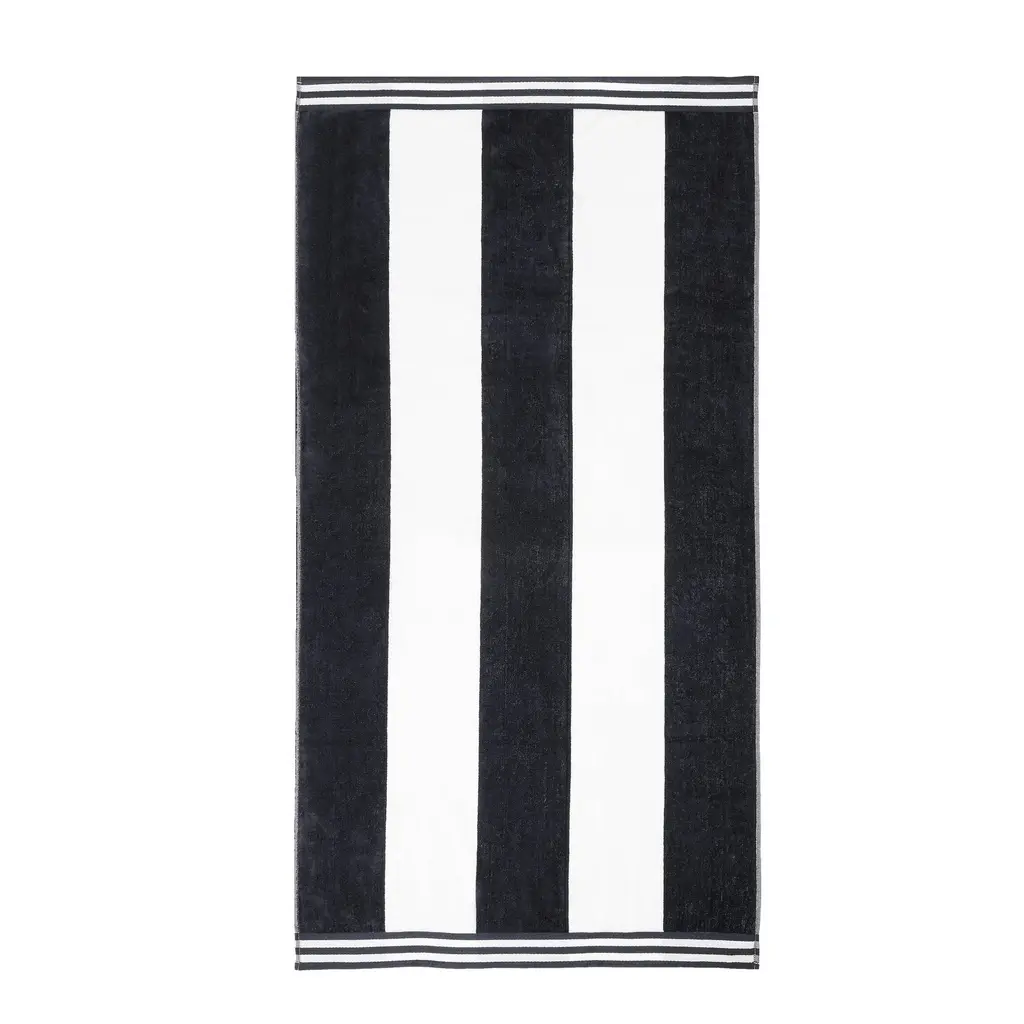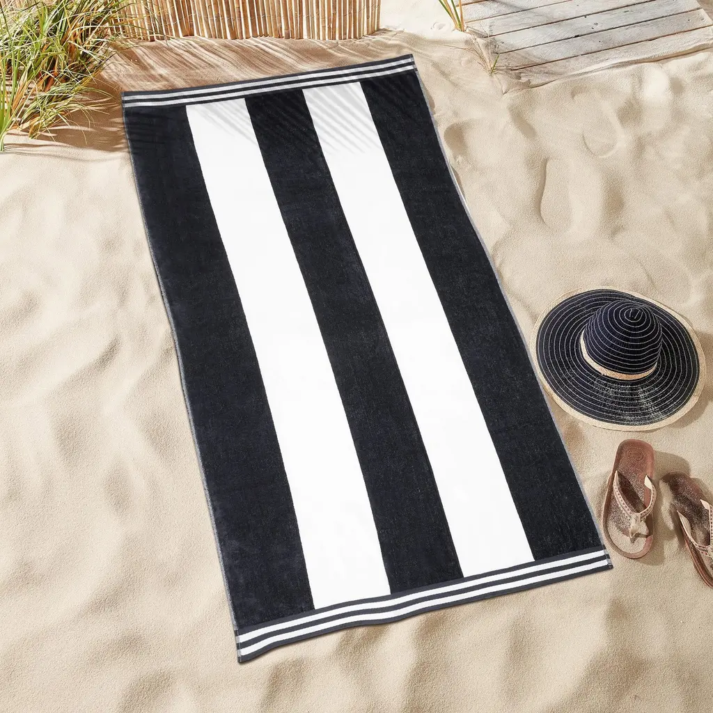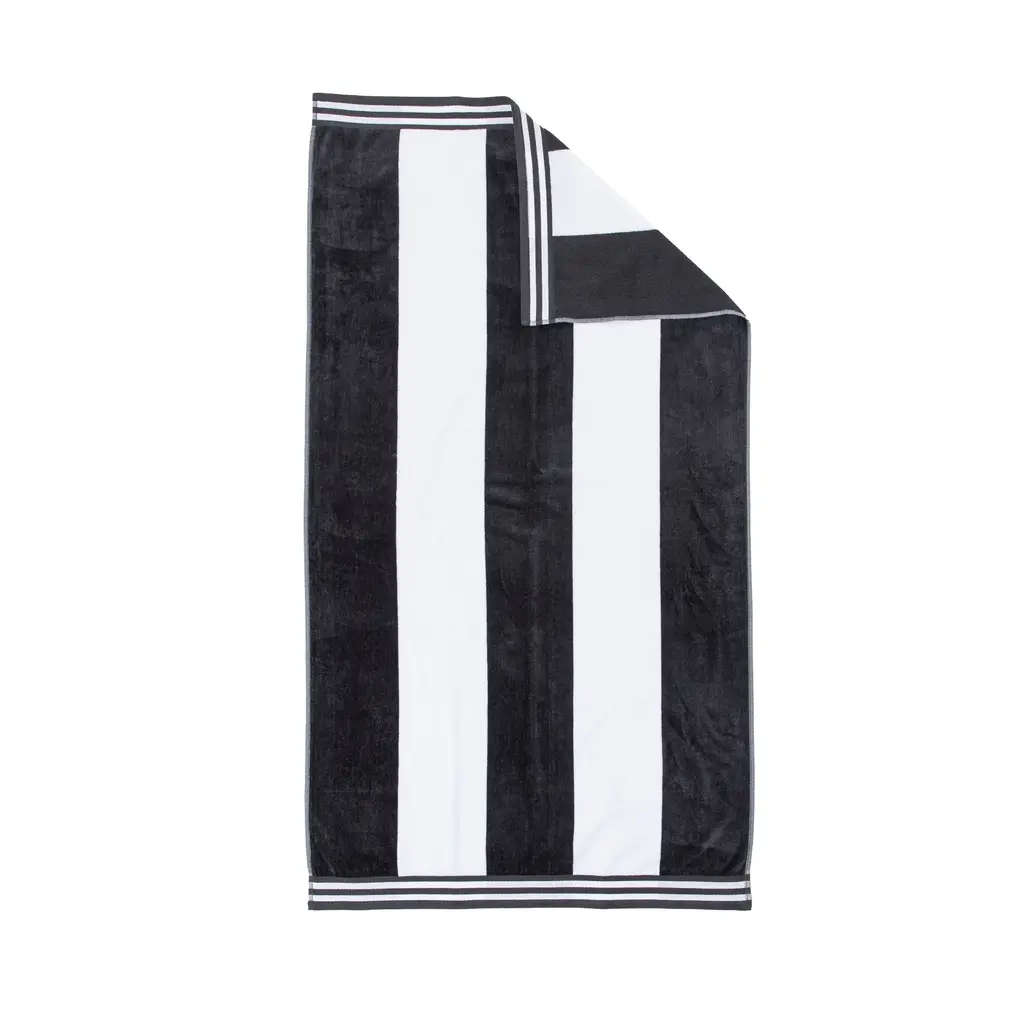 Cabana Stripe Oversized Cotton Beach Towel By Superior - Charcoal