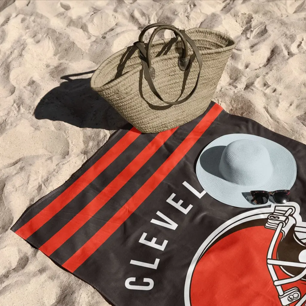 Represent your NFL team in style with the "Stripes" Beach Towel, designed in team colors for maximum fan pride. Featuring bold stripes at the top and bottom, along with a prominent team logo at the center, it’s perfect for beach days, poolside lounging, or tailgate celebrations. The striking design makes it easy to showcase your team loyalty wherever you go. Crafted from soft, high-quality cotton, this towel offers comfort and excellent absorbency, ensuring you stay dry after a swim or while relaxing under the sun. Its generous size provides plenty of space to stretch out or wrap up, combining both functionality and style. Built for durability, it keeps its vibrant design and team colors even after multiple washes. For any NFL fan looking to add a bold, sporty touch to their outdoor activities, the "Stripes" Beach Towel is a must-have. Whether you’re enjoying a sunny day at the beach or gearing up for a game-day tailgate, it’s the perfect accessory to show off your team pride in comfort and style.