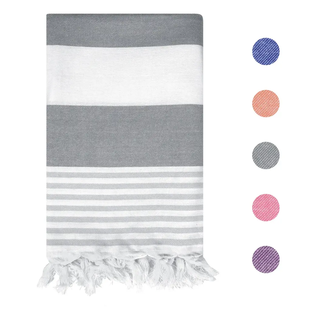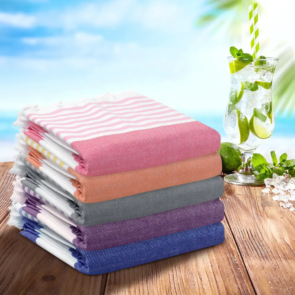 Whether it is sunbathing, picnic or outdoor activities, this beach towel can bring you a comfortable and pleasant experience. It is light and portable, absorbent and quick-drying, both fashionable and practical, and is your good companion for playing at the beach.Specification:>Material: 100% cotton>Type: Beach Towels>Size: 100cm x 180cm/40" x 72">Colors:Blue/Orange/Grey/Pink/Purple>Package includes:1 PcsTips:1. Affected by various production, devices, and brightness, actual colors may differ from online colors.2. Please allow 2-3cm manual measurement differences.