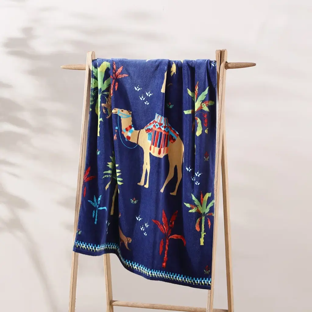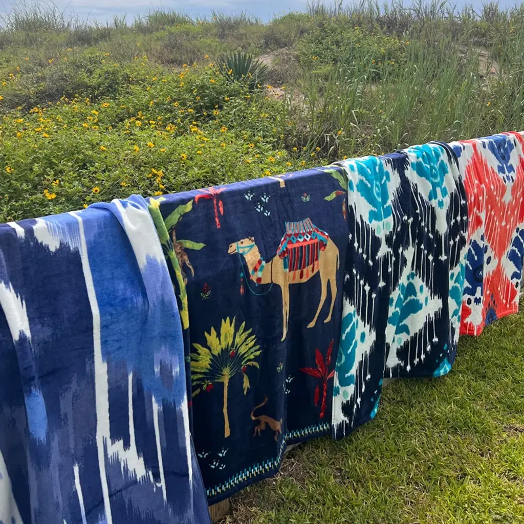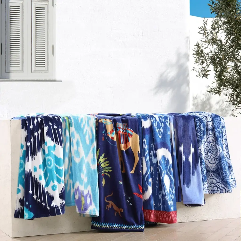 Head to the beach with these handsome, color-framed beach towels. These 500-gram velour towels reverse to terry.