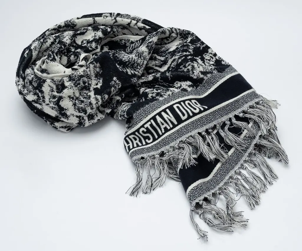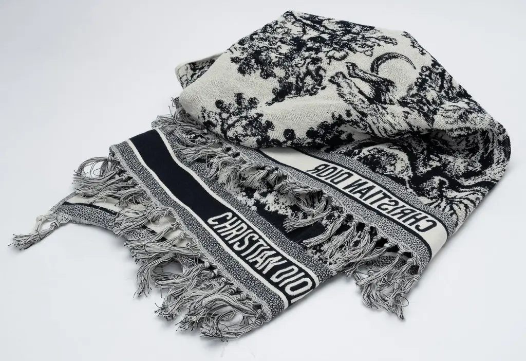 Christian Dior Toile de Jouy reverse beach towel gris cotton tonal jacquard. 100% cotton. Brand new in unused condition. Made in Italy. 100 x 180 cm