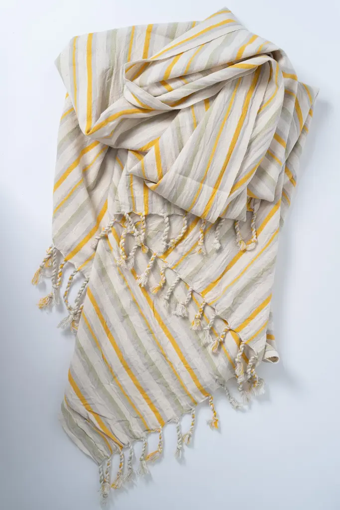 The Ereniko Towel is crafted from a premium blend of cotton and linen, offering a combination of softness, durability, and breathability. Woven with vibrant colors, this towel adds a lively touch while maintaining practicality. Its sturdy yet gentle fabric is perfect for everyday use, whether as a towel, wrap, or decorative accent, making it a versatile and stylish addition to any collection.