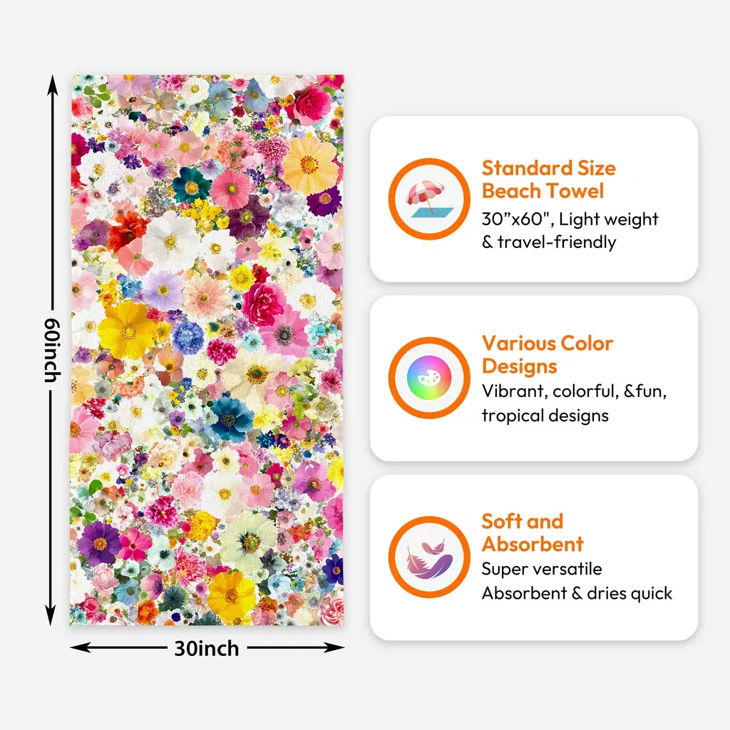 Floral Beach Towel Quick Dry Swimming Pool Towel 30"x60" - Pink