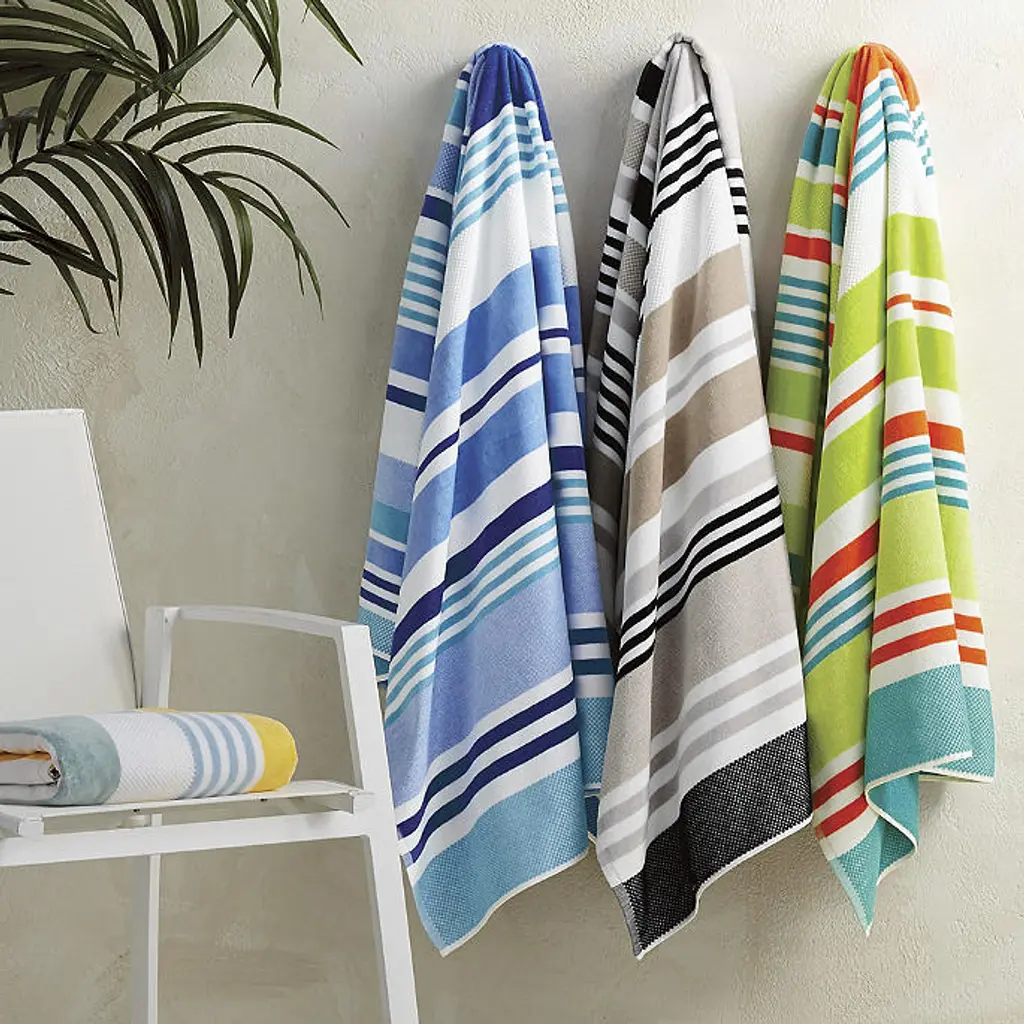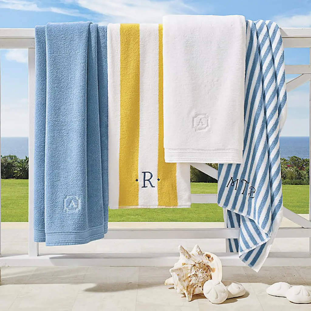 Lounge in luxury and style with 100% Turkish cotton in coastal stripes. The long-staple cotton fibers are woven for supreme softness, durability and a quick-drying weight. 100% Turkish cotton 450 gsm 1-1/2" stripes Contrasting stitch thread color is suggested for monogramming Monogram has a three-character maximum and is 2-1/2"H x 9-1/4"W When purchasing a set of two or four, monogram will be the same on all towels Machine wash cold; tumble dry low To maintain color quality, avoid contact with products containing benzoyl peroxide Made in Turkey A Frontgate exclusive. At Frontgate, our primary focus is quality. We guarantee that every product we sell will stand up to the supreme test – our customers' satisfaction. To learn more about our policies, visit our Shipping & Processing, Returns & Exchanges and Warranty & Price Guarantee pages. Lounge in luxury and style with 100% Turkish cotton in coastal stripes. The long-staple cotton fibers are woven for supreme softness, durability and a quick-drying weight. 100% Turkish cotton 450 gsm 1-1/2" stripes Contrasting stitch thread color is suggested for monogramming Monogram has a three-character maximum and is 2-1/2"H x 9-1/4"W When purchasing a set of two or four, monogram will be the same on all towels Machine wash cold; tumble dry low To maintain color quality, avoid contact with products containing benzoyl peroxide Made in Turkey A Frontgate exclusive. At Frontgate, our primary focus is quality. We guarantee that every product we sell will stand up to the supreme test – our customers' satisfaction. To learn more about our policies, visit our Shipping & Processing, Returns & Exchanges and Warranty & Price Guarantee pages.