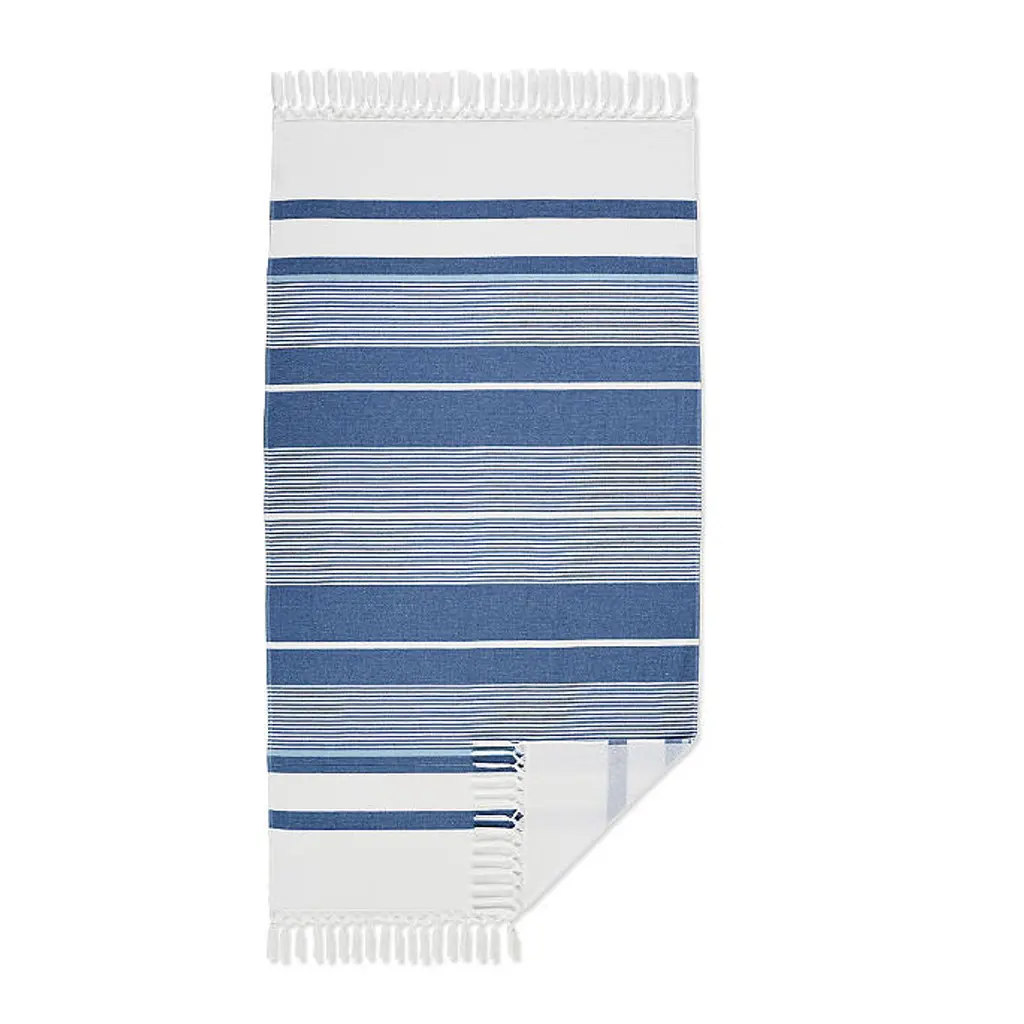 A timeless accessory, the Resort Turkish Beach Towel combines classic nautical stripes and fringed ends with long-staple Turkish cotton. The irresistibly soft and absorbent terry cloth construction on the reverse gets softer with every wash. It's so soft you'll want to use it every day, whether on the beach, by the pool or as a throw when lounging on the couch.100% long-staple Turkish cottonLightweight and quick-drying 350 gsm Machine wash cold, gentle cycle; tumble dry lowQuality tested for colorfastness to sea water, chlorine bleach & 100 hours of UV light Lightweight design makes it easy to pack for the beach, lake or poolMade in TurkeyA Frontgate exclusive.At Frontgate, our primary focus is quality. We guarantee that every product we sell will stand up to the supreme test – our customers' satisfaction. To learn more about our policies, visit our Shipping & Processing, Returns & Exchanges and Warranty & Price Guarantee pages.