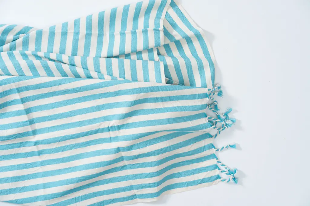 Introducing the "Girit Turquoise Towel" - a captivating fusion of style and serenity. This Turkish towel showcases an enchanting design with white and turquoise stripes, creating a visually stunning and calming effect.Experience the ultimate indulgence with the luxurious softness and exceptional absorbency of this hand-woven towel. Crafted from premium materials, it offers a lavish touch and ensures quick-drying for maximum comfort. Whether you're lounging by the pool, soaking up the sun at the beach, or treating yourself to a spa day, this towel is designed to enhance your relaxation experience.Beyond its practical functionality, the "Girit Turquoise Towel" exudes a sense of effortless elegance. The refined combination of white and turquoise stripes adds a touch of sophistication and tranquility to any space. Whether it's used as a decorative element or draped over your shoulders at a special event, this towel effortlessly complements your personal style.
