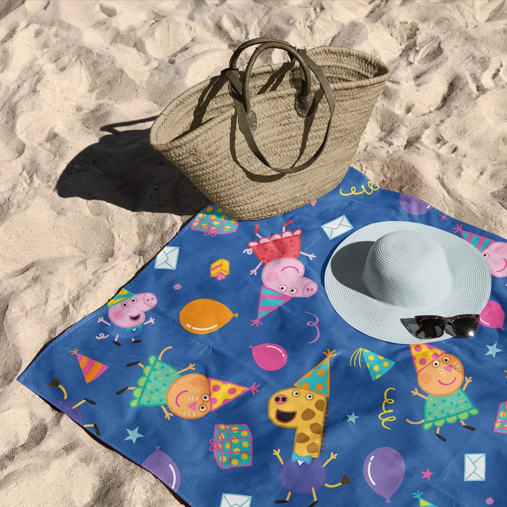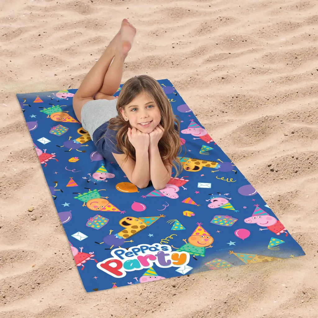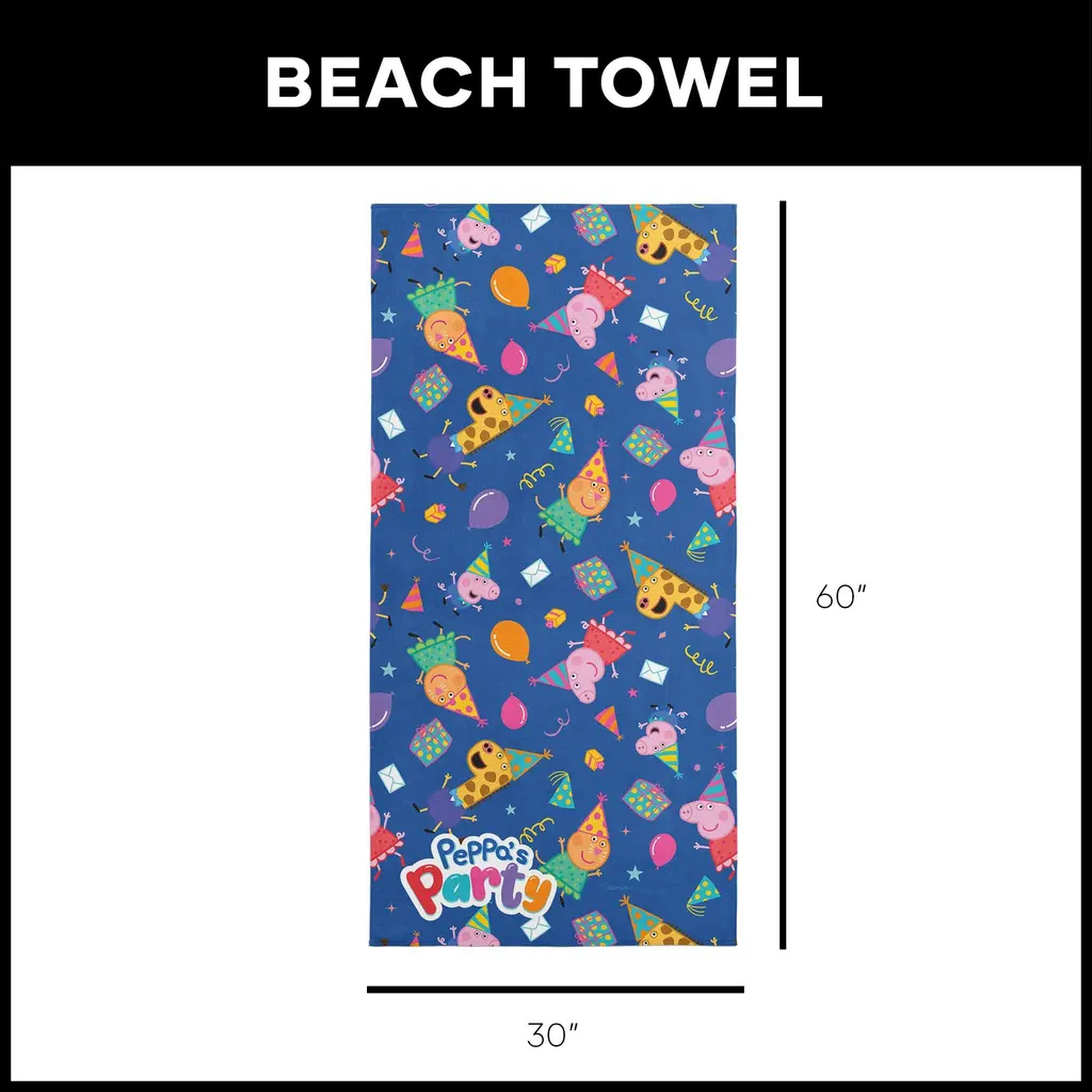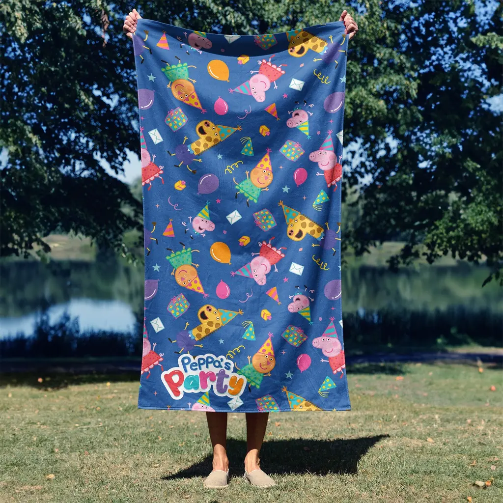 Get ready for a beach party like no other with the Peppa "Party Pattern" Beach Towel! Peppa Pig is all dressed up in her party best, and she's brought along all her friends for a day of fun in the sun. The towel is splashed with vibrant party images, from balloons to confetti, making every trip to the beach or pool a celebration. Whether you're soaking up the sun or drying off after a swim, this towel adds a splash of joy to your day. The soft, absorbent material is perfect for wrapping up after a dip, and the playful design is sure to make you smile. Peppa and her pals are ready to bring the party vibes wherever you go, turning every moment into a festive occasion.Features: