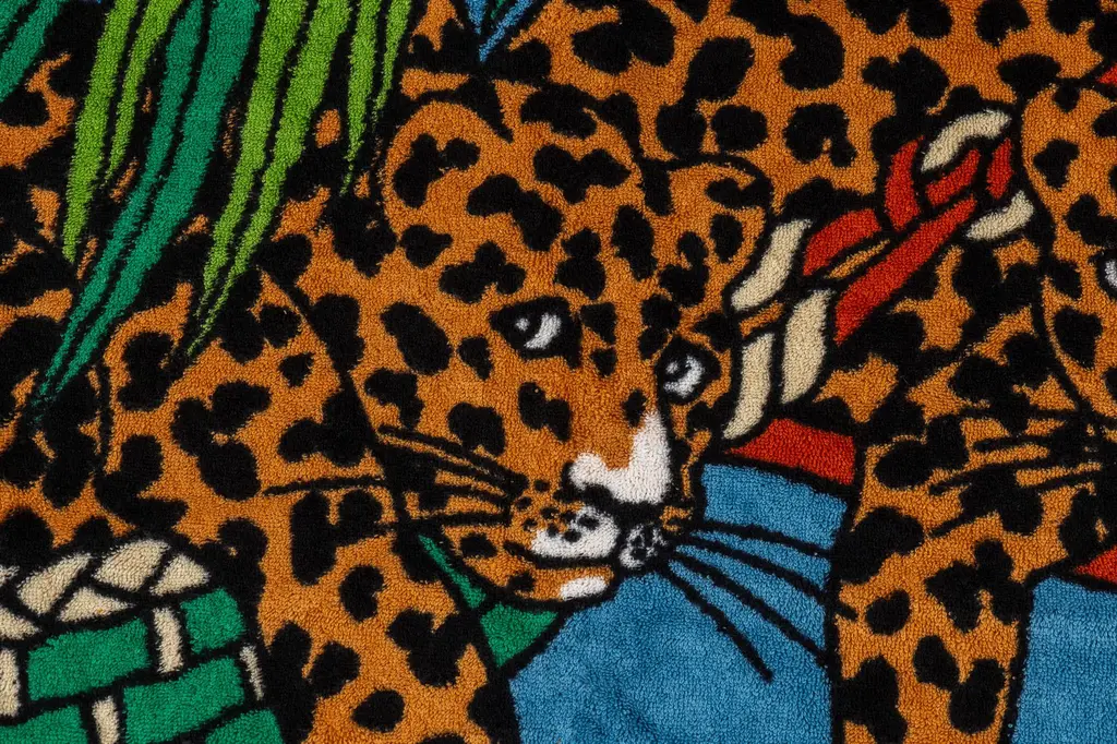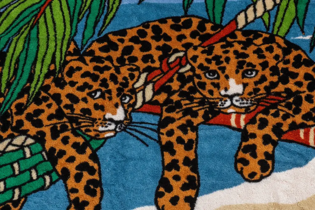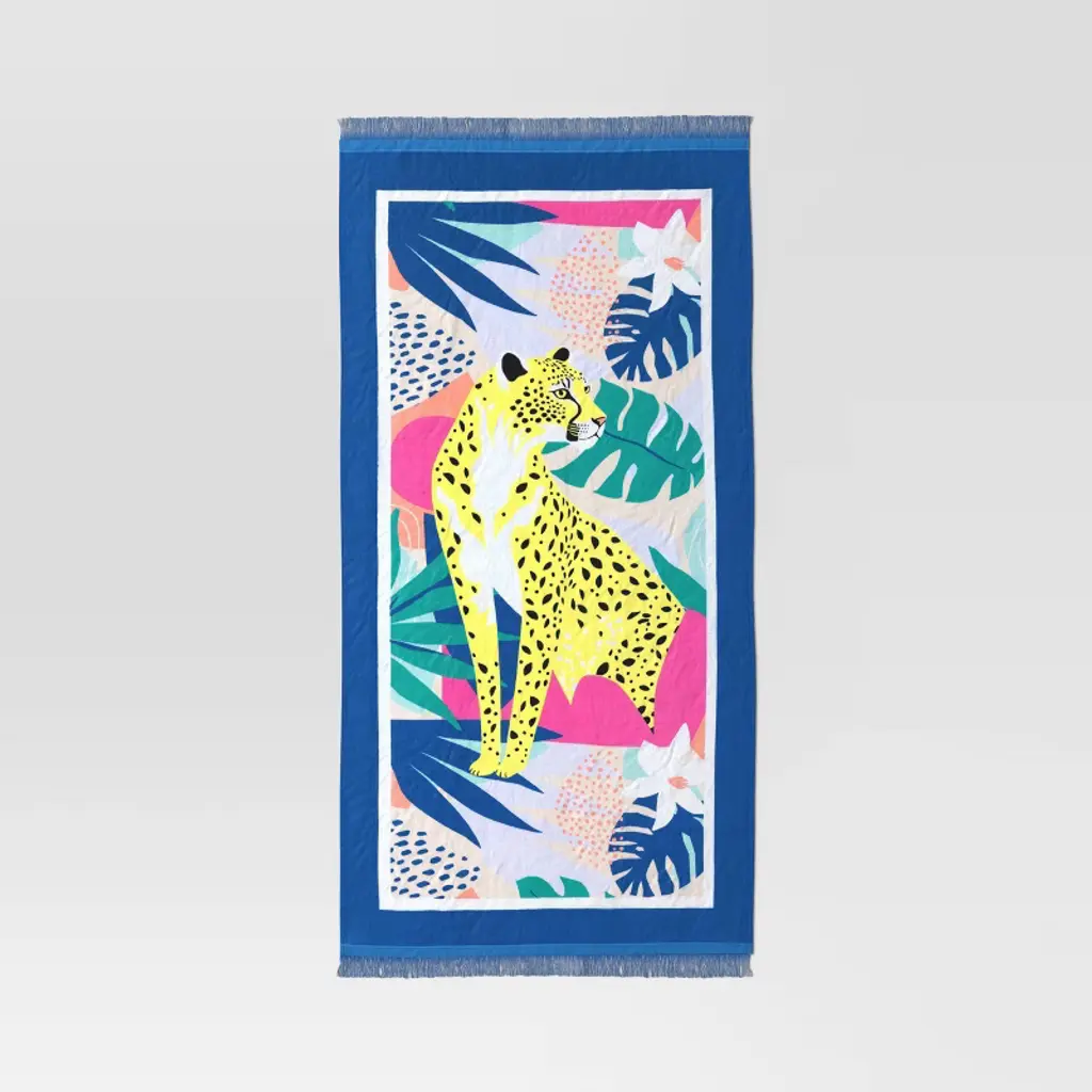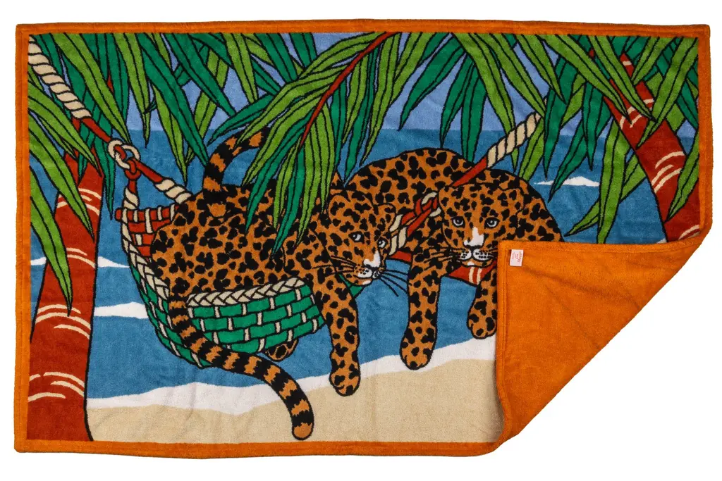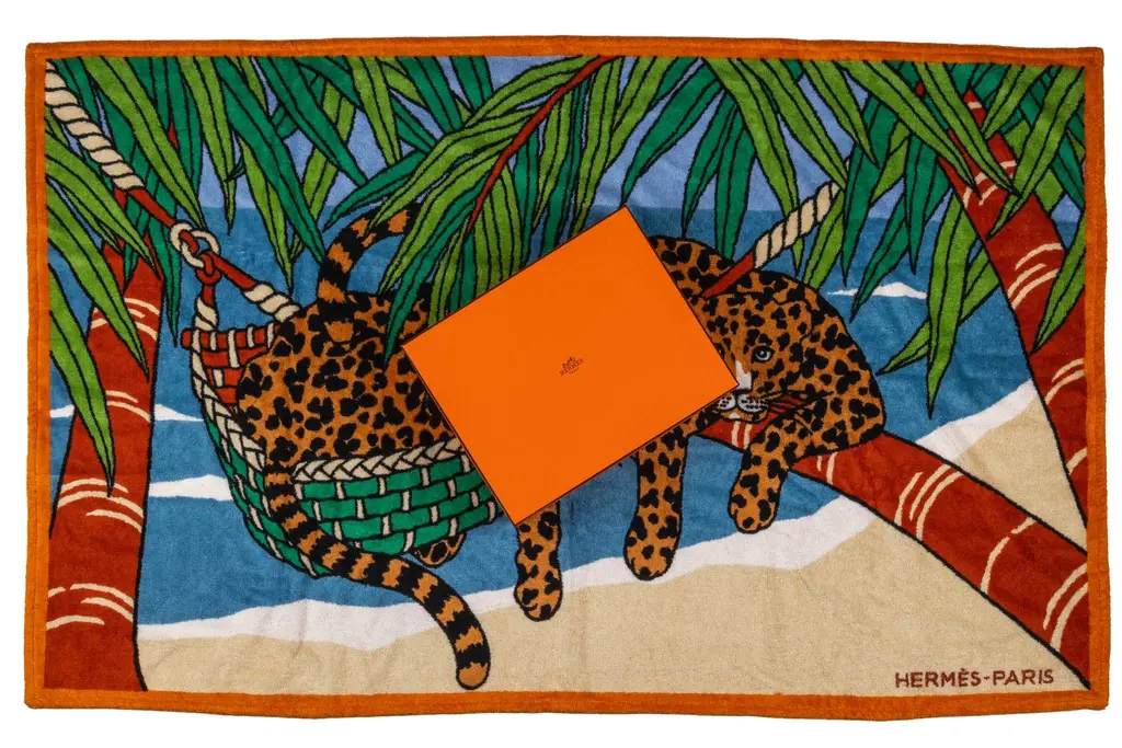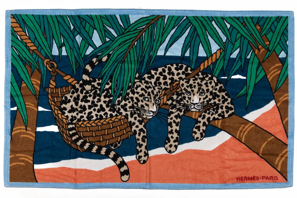 Hermès new cotton beach towel in multicolor way with sleeping ghepards design. Comes with original box.