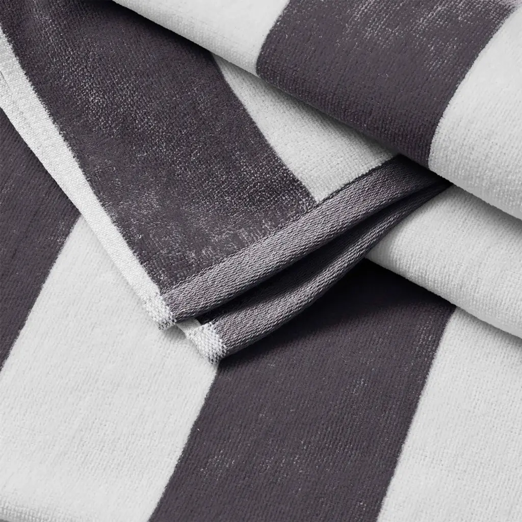 Create an oasis of comfort as you wrap yourself in these ultra-soft, absorbent cabana beach towels. Meticulously crafted, each towel bears the softness, absorbency, durability, and classic sense of style that fits a fun summer aesthetic. This set includes vibrant striped towels, offering a timeless look that complements any beach ensemble. With a palette of vibrant colors to choose from, these cotton towels effortlessly blend into your beach aesthetic, providing a fun and playful touch that everyone can appreciate. Redefine your beach experience, where modern style meets timeless comfort. These beach towels are Made in Green Certified by OEKO-TEX® and have been independently tested and certified free from harmful chemicals and manufactured in environmentally friendly facilities under safe and socially responsible working conditions.