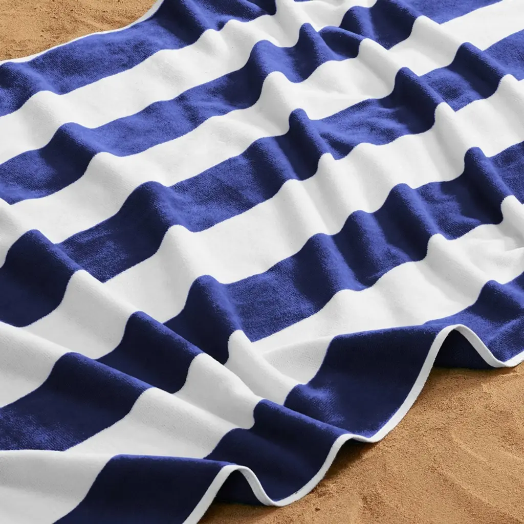 Create an oasis of comfort as you wrap yourself in these ultra-soft, absorbent cabana beach towels. Meticulously crafted, each towel bears the softness, absorbency, durability, and classic sense of style that fits a fun summer aesthetic. This set includes vibrant striped towels, offering a timeless look that complements any beach ensemble. With a palette of vibrant colors to choose from, these cotton towels effortlessly blend into your beach aesthetic, providing a fun and playful touch that everyone can appreciate. Redefine your beach experience, where modern style meets timeless comfort. These beach towels are Made in Green Certified by OEKO-TEX® and have been independently tested and certified free from harmful chemicals and manufactured in environmentally friendly facilities under safe and socially responsible working conditions.