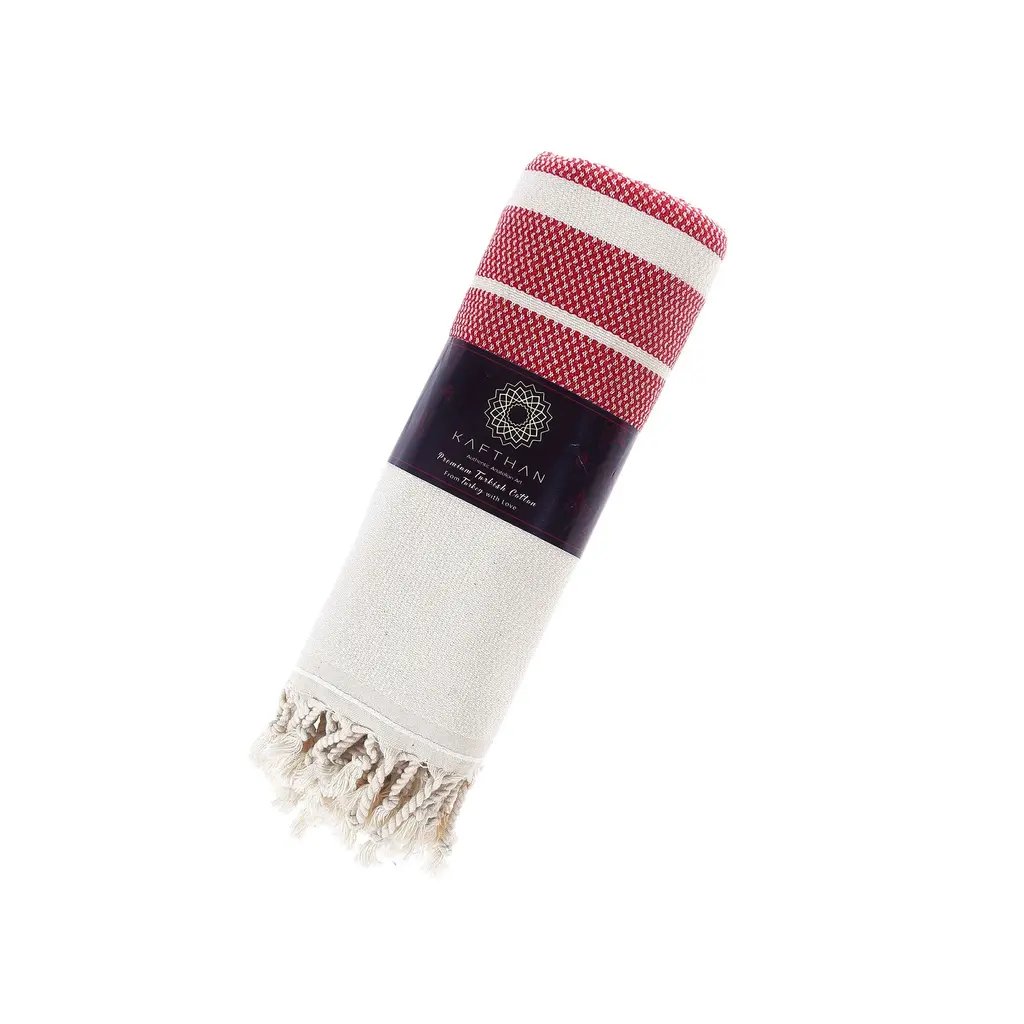 Kafthan's premium Turkish cotton beach and bath towels are lightweight and easy to carry with on a vacation. Our Turkish towels can be used as a light travel blanket or as a throw with their elegant style. Kafthan's Turkish towels soak up water with ease and dry quickly. Turkish towels are sand resistant which makes them perfect for a beach trip. Turkish towels can also be used as a picnic blanket or stroller cover. Turkish towels are a perfect accessory at home and on vacation.Features: