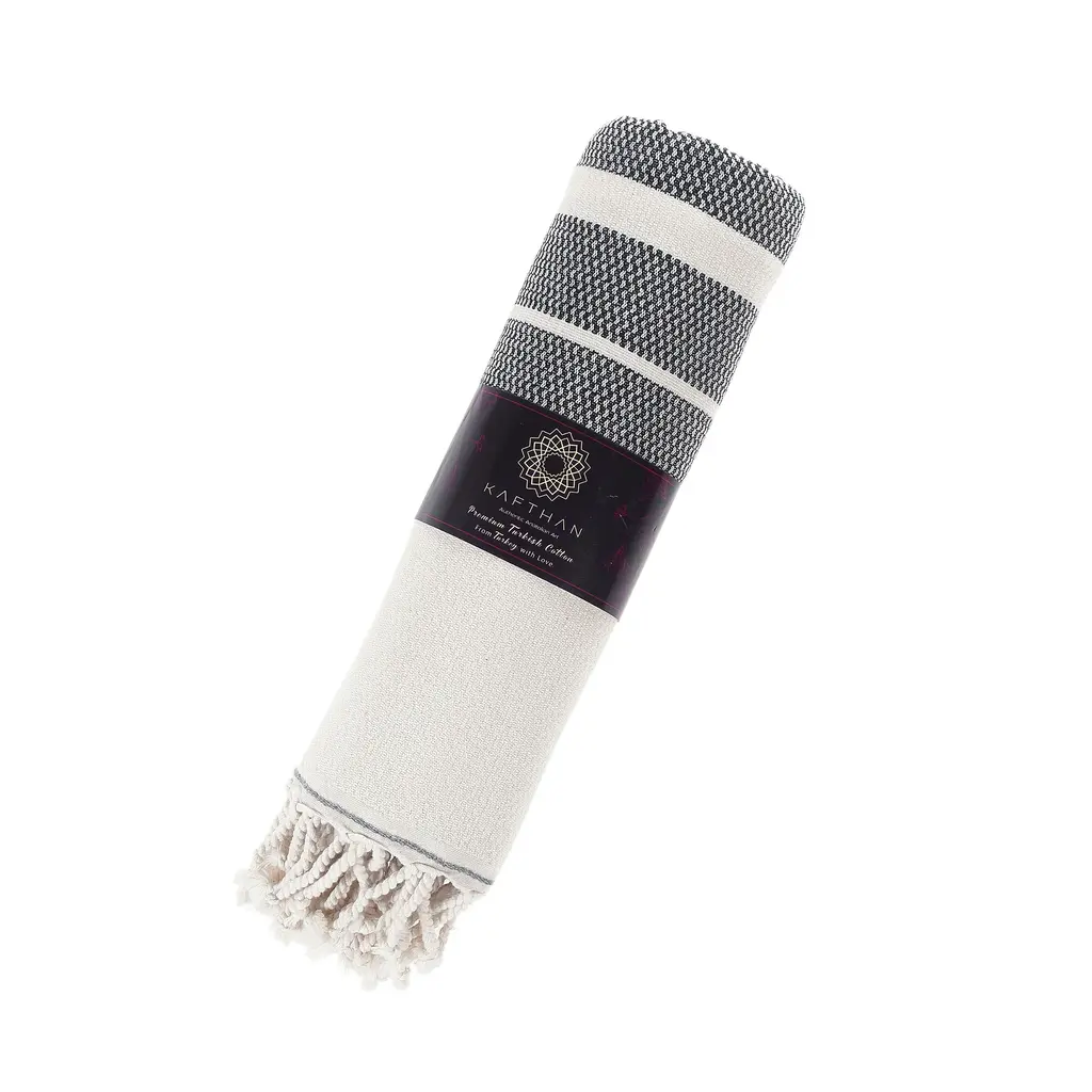 Kafthan's premium Turkish cotton beach and bath towels are lightweight and easy to carry with on a vacation. Our Turkish towels can be used as a light travel blanket or as a throw with their elegant style. Kafthan's Turkish towels soak up water with ease and dry quickly. Turkish towels are sand resistant which makes them perfect for a beach trip. Turkish towels can also be used as a picnic blanket or stroller cover. Turkish towels are a perfect accessory at home and on vacation.Features: