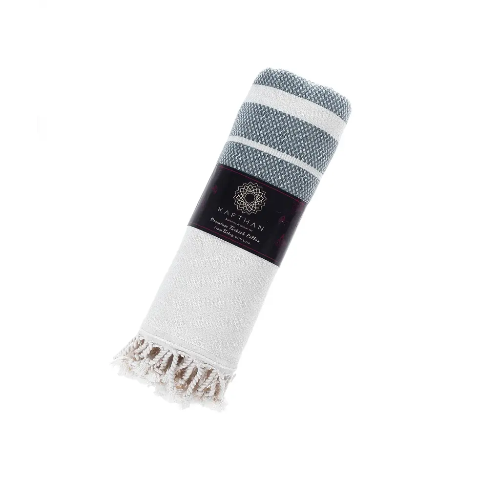 Kafthan's premium Turkish cotton beach and bath towels are lightweight and easy to carry with on a vacation. Our Turkish towels can be used as a light travel blanket or as a throw with their elegant style. Kafthan's Turkish towels soak up water with ease and dry quickly. Turkish towels are sand resistant which makes them perfect for a beach trip. Turkish towels can also be used as a picnic blanket or stroller cover. Turkish towels are a perfect accessory at home and on vacation.Features: