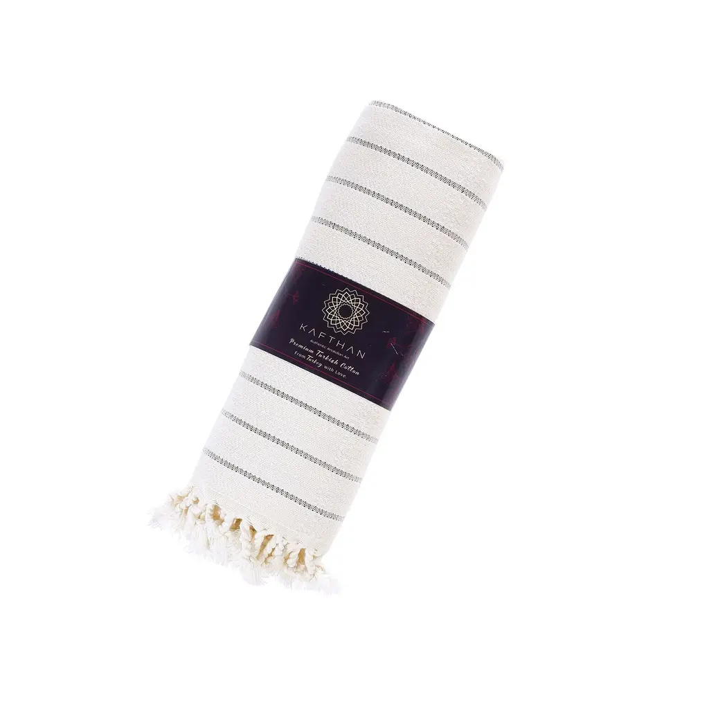 Kafthan Textile Gocek Turkish Cotton Single Bath And Beach Towel - 67"l X 35"w X 0.5"h - Gray Striped