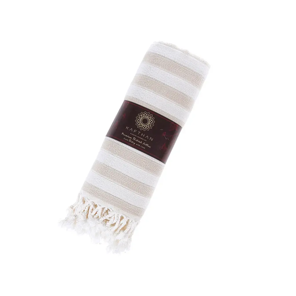 Kafthan's premium Turkish cotton beach and bath towels are lightweight and easy to carry with on a vacation. Our Turkish towels can be used as a light travel blanket or as a throw with their elegant style. Kafthan's Turkish towels soak up water with ease and dry quickly. Turkish towels are sand resistant which makes them perfect for a beach trip. Turkish towels can also be used as a picnic blanket or stroller cover. Turkish towels are a perfect accessory at home and on vacation.Features: