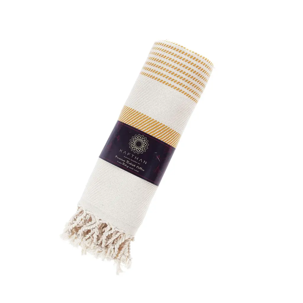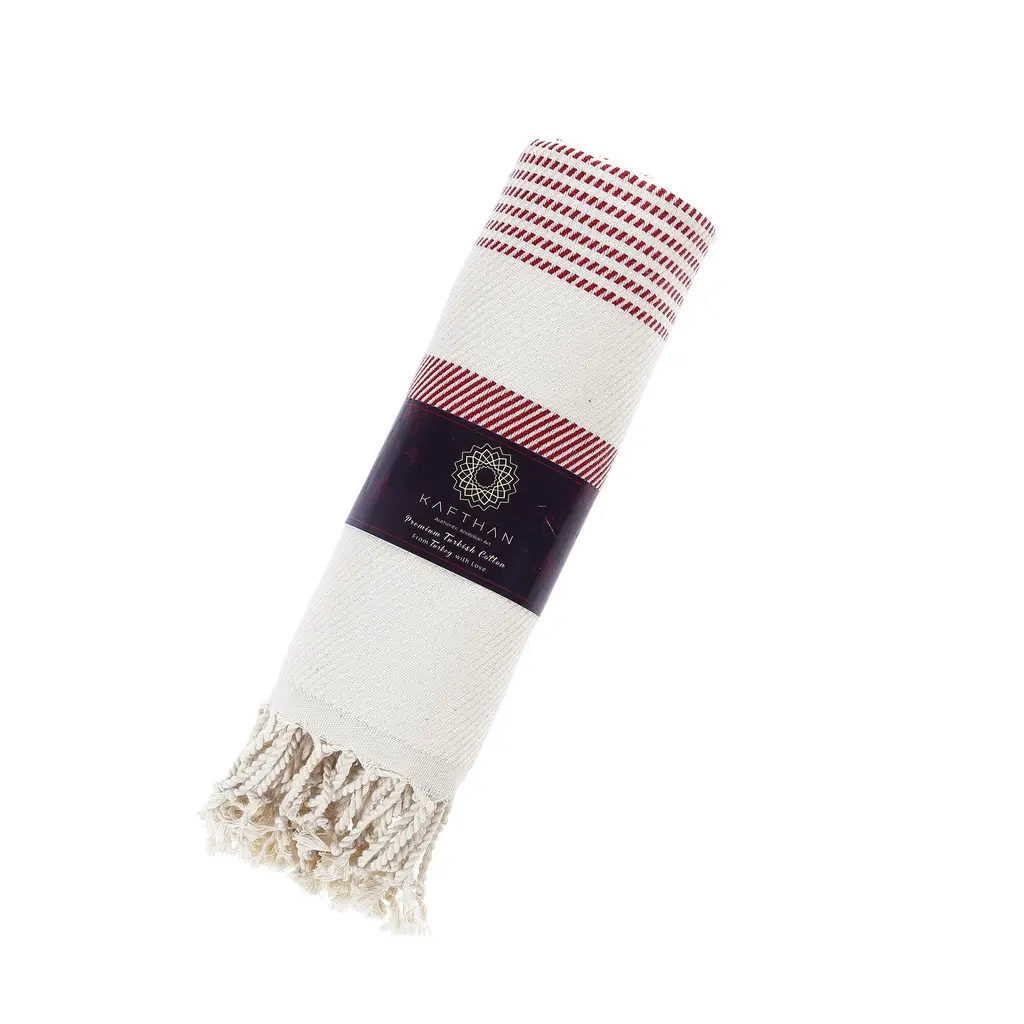 Kafthan's premium Turkish cotton beach and bath towels are lightweight and easy to carry with on a vacation. Our Turkish towels can be used as a light travel blanket or as a throw with their elegant style. Kafthan's Turkish towels soak up water with ease and dry quickly. Turkish towels are sand resistant which makes them perfect for a beach trip. Turkish towels can also be used as a picnic blanket or stroller cover. Turkish towels are a perfect accessory at home and on vacation.Features: