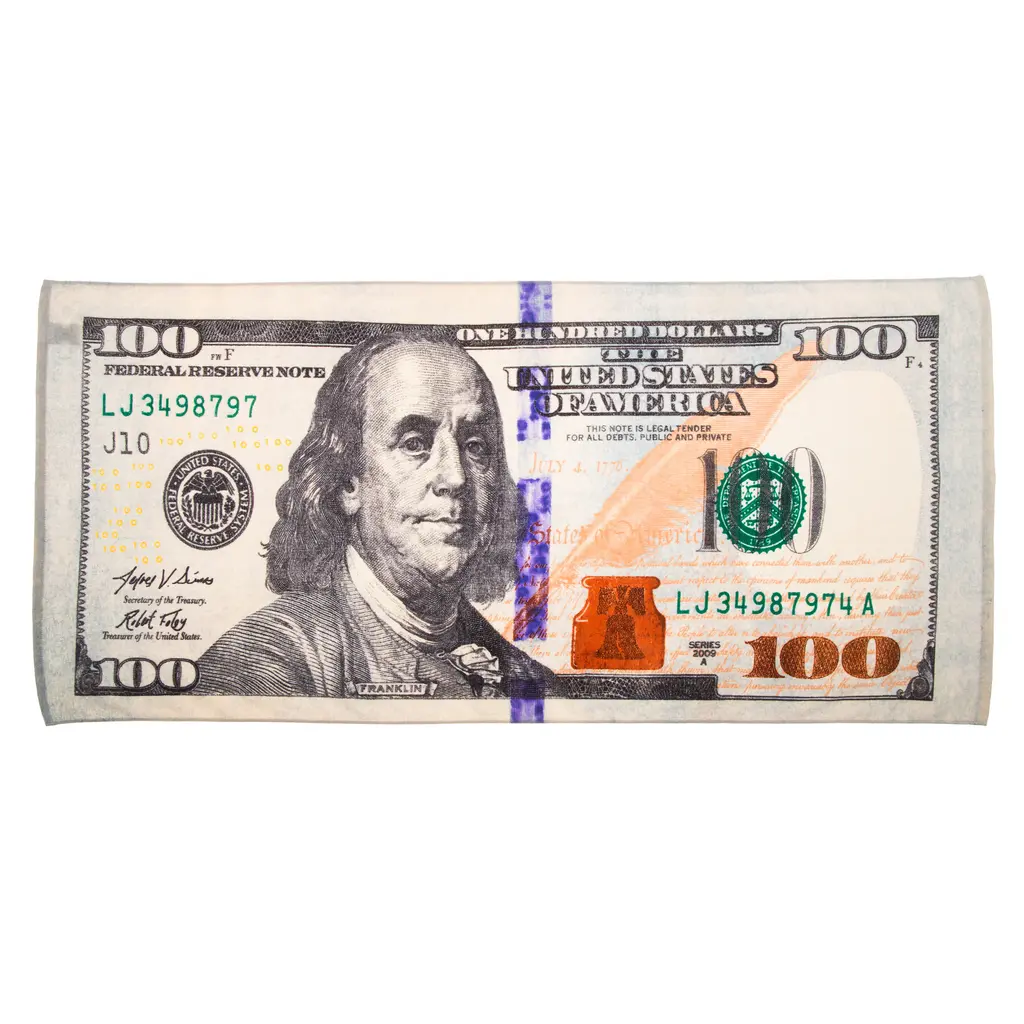 Kaufman New 100 Bill Beach Towel. Size 30"x 60".set Of 2 - 30"x60" - 30"x60"