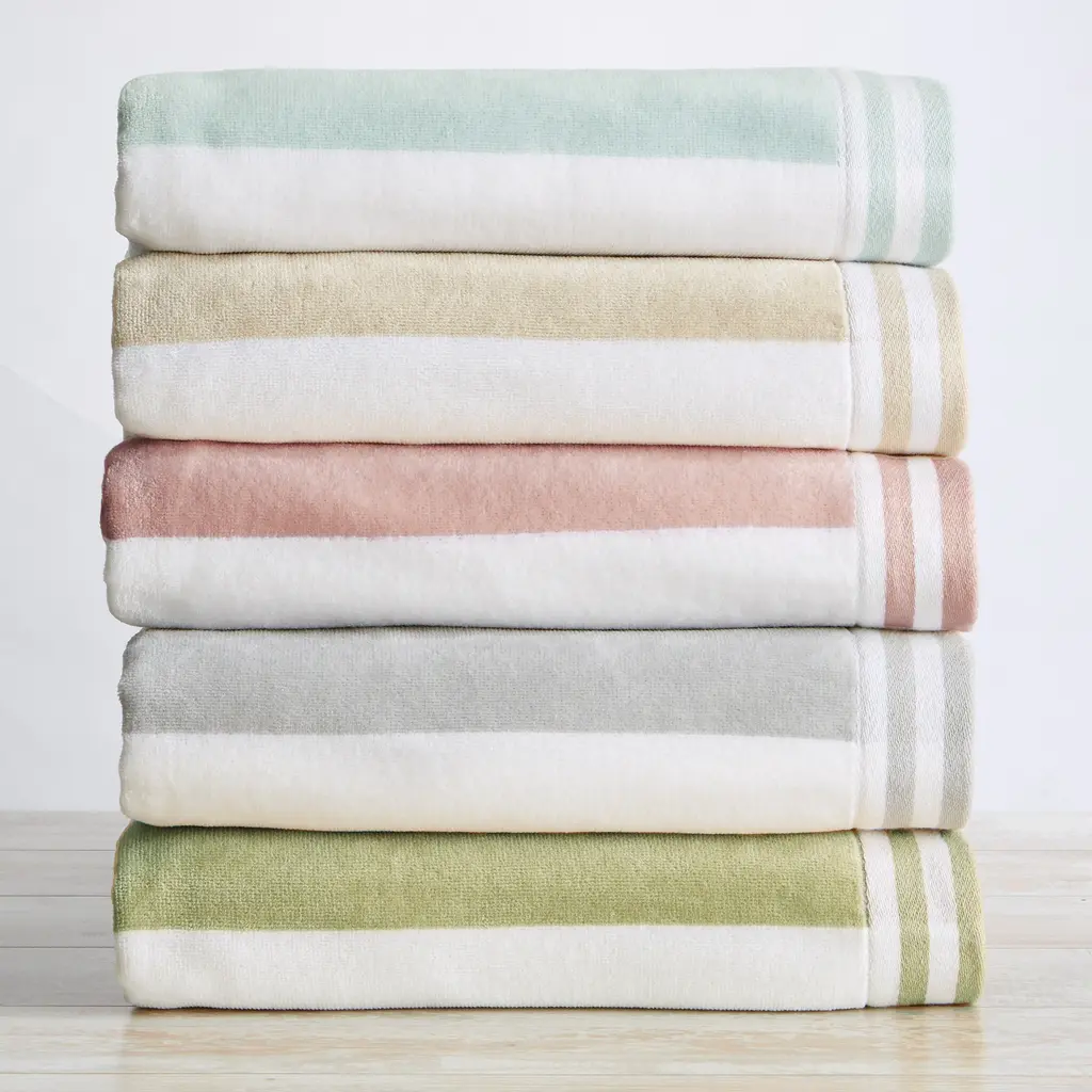 Add cabana beach towels to your beach essentials list, and head to your summer vacation! Crafted from 100% cotton velour, these towels are ultra-soft, durable, and ultra-absorbent and quick-drying. Lounge in the sun with soft cotton towels, or enjoy your summer with quick-drying cotton towels.