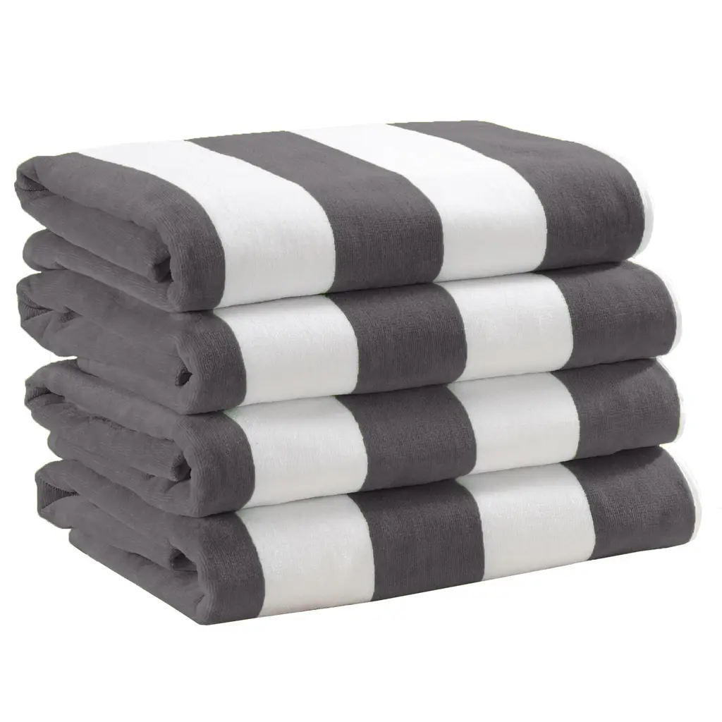 Enjoy the luxurious feel of 100% cotton velour with a timeless cabana style as you soak up the sun this summer. These pool towels are crafted with quality cotton velour, so they're soft to the touch, absorbent, and quick-drying while still durable for many summers to come. The classic cabana stripe design will never go out of style and will match every aesthetic in your home. Whether lounging by the pool or enjoying the sun and sand, these towels offer ultimate comfort.
