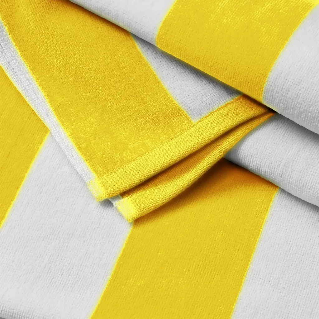 Enjoy the luxurious feel of 100% cotton velour with a timeless cabana style as you soak up the sun this summer. These pool towels are crafted with quality cotton velour, so they're soft to the touch, absorbent, and quick-drying while still durable for many summers to come. The classic cabana stripe design will never go out of style and will match every aesthetic in your home. Whether lounging by the pool or enjoying the sun and sand, these towels offer ultimate comfort.