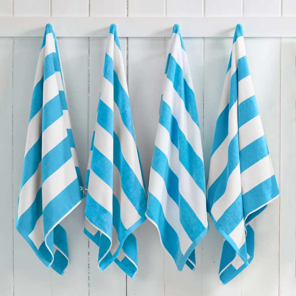 Enjoy the luxurious feel of 100% cotton velour with a timeless cabana style as you soak up the sun this summer. These pool towels are crafted with quality cotton velour, so they're soft to the touch, absorbent, and quick-drying while still durable for many summers to come. The classic cabana stripe design will never go out of style and will match every aesthetic in your home. Whether lounging by the pool or enjoying the sun and sand, these towels offer ultimate comfort.