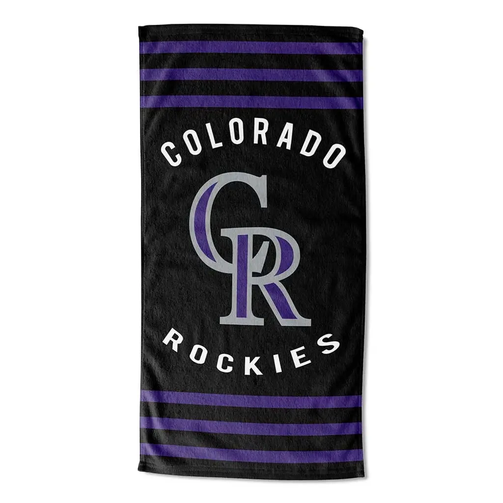 Rep your baseball team with this impressive and vivid Officially Licensed MLB "Stripes" Beach Towel. Designed around your favorite team, this absorbent 30"x 60" towel has your team's logo and name in the center of the towel, laid out vertically with bold stripes above and below. No one will ever question who you're rooting for when you're drying off after a swim at the pool with this cotton-poly blend towel!Features: