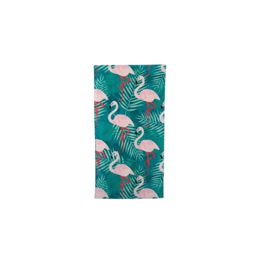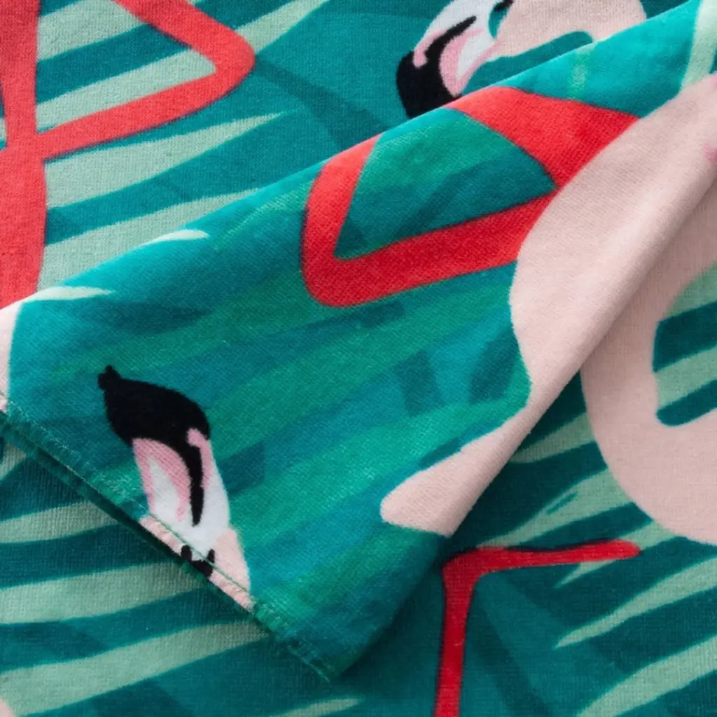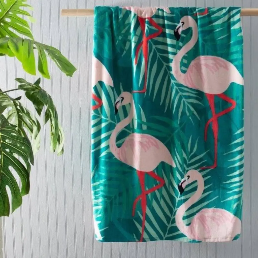 Moda At Home Flamingos Palm Velour Beach Towel