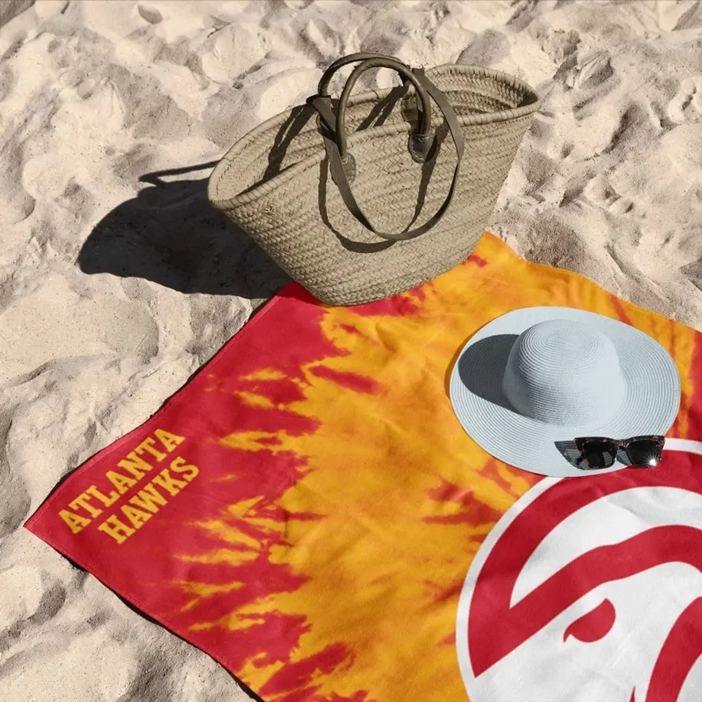Represent your NBA team with the Tie Dye Beach Towel, featuring a bold design and a prominent team logo. Ideal for fans looking to make a statement, it’s perfect for beach days, poolside lounging, or tailgates. The vibrant, swirling pattern adds a fun and exciting touch to any outing, ensuring your team spirit stands out. Crafted from soft, high-quality cotton, this towel provides excellent absorbency and comfort, keeping you dry and relaxed after a swim or while basking in the sun. Its generous size offers ample room to stretch out, combining practicality with style. Built for durability, it holds up through repeated washes while maintaining its vibrant look. Perfect for NBA fans who want to add a unique flair to their outdoor activities, this Beach Towel combines comfort, durability, and team pride in one exciting accessory. Whether you're at the pool, beach, or game day tailgate, it’s a must-have to showcase your support.