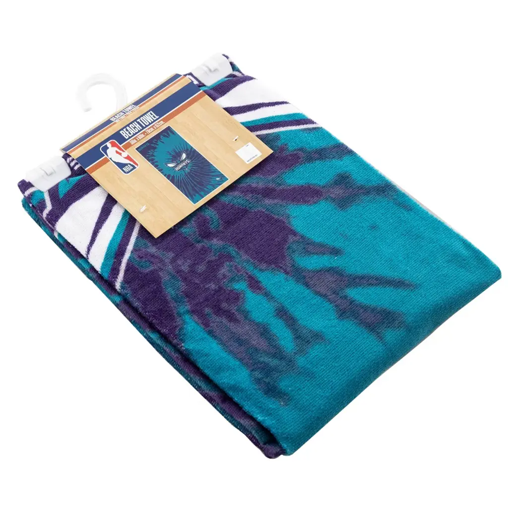 Soak up the sun while lounging on this Officially Licensed NBA "Psychedelic" Beach Towel by TheNorthwest. Show off your favorite team at the pool or beach with this fun towel. Featuring an NBA team name and logo in the center of a tie-dye background, this absorbent 30"x 60" towel is the perfect accessory for drying off after a swim. This cotton-poly blend towel is rad!