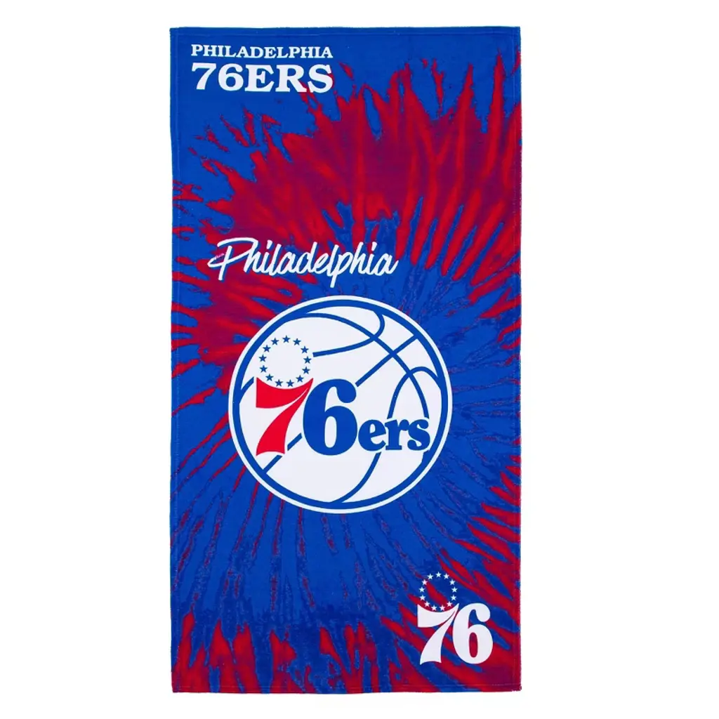 Soak up the sun while lounging on this Officially Licensed NBA "Psychedelic" Beach Towel by TheNorthwest. Show off your favorite team at the pool or beach with this fun towel. Featuring an NBA team name and logo in the center of a tie-dye background, this absorbent 30"x 60" towel is the perfect accessory for drying off after a swim. This cotton-poly blend towel is rad!