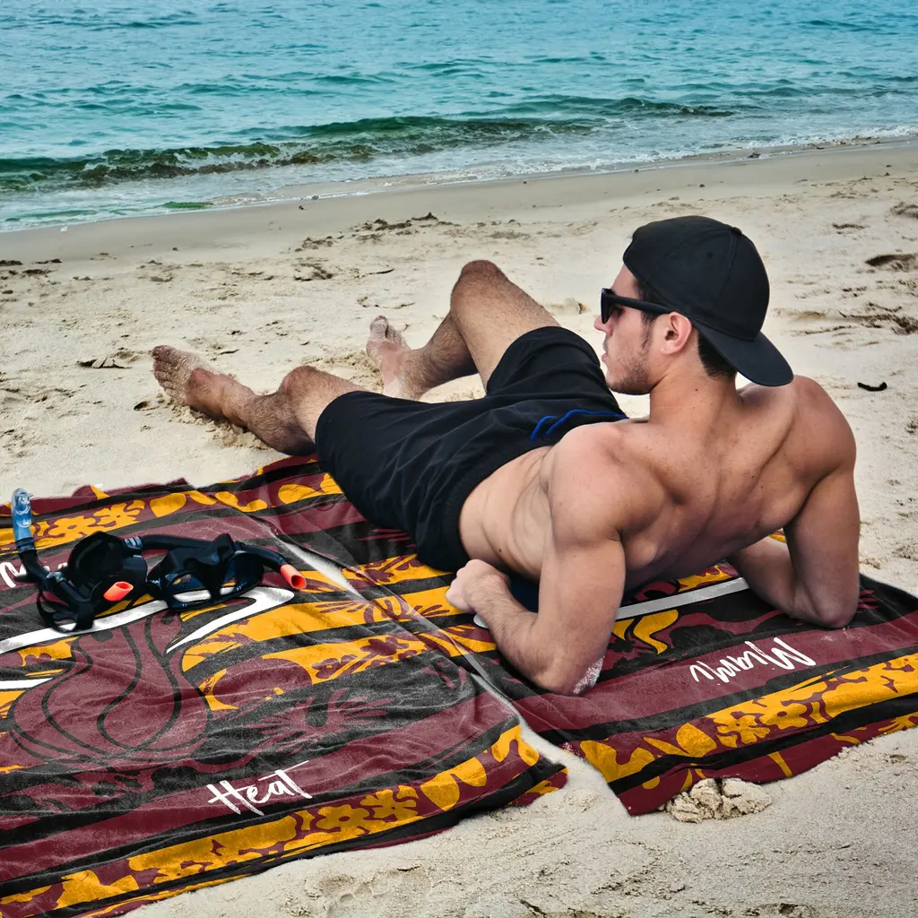 Show your team pride with the NBA "Pocket" Beach Towel! This vibrant towel features your team's logo and name, standing out against a tropical graphic striped background in bold team colors. Perfect for beach days or poolside lounging, this towel is designed to make a statement. The tropical stripes add a fun touch, making it easy to spot your favorite team from afar. Whether for yourself or as a gift, the NBA Pocket Beach Towel is a must-have for any basketball fan. Celebrate your team spirit while enjoying the sun and surf with this stylish and functional accessory.Features: