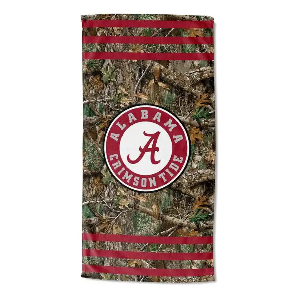 Never blend in while lounging on this Officially Licensed NCAA Realtree Beach Towel. Ideal for the outdoor adventurer, these unique camo towels are perfect for any pool or beach day. Featuring a college team name and logo on a Realtree camo background, this absorbent 30"x 60" towel is the perfect accessory for drying off after a swim. This cotton-poly blend towel will stand out!Features: