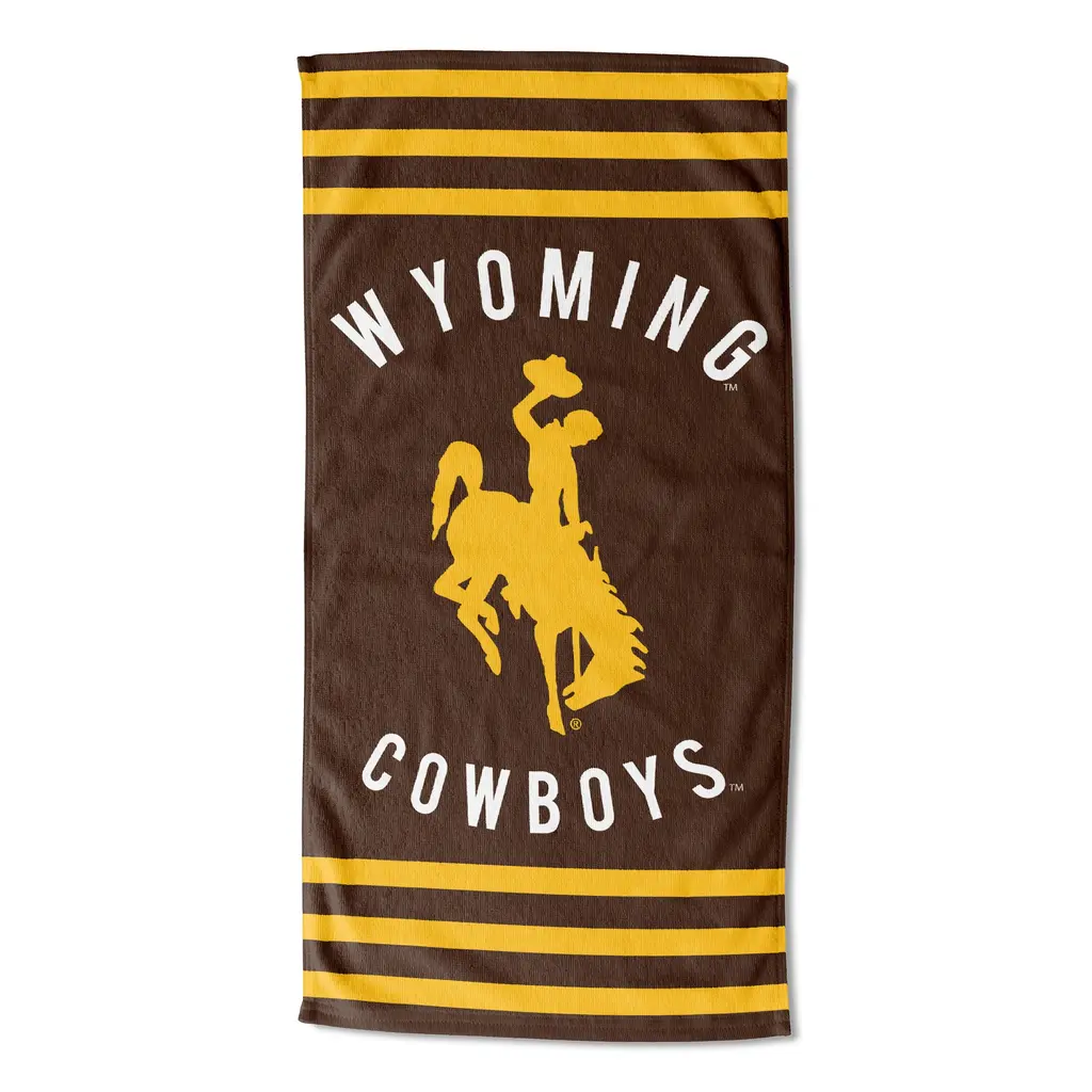 Rep your college team with this impressive and vivid Officially Licensed NCAA "Stripes" Beach Towel. Designed around your favorite college or university, this absorbent 30"x 60" towel has your team's logo and name in the center of the towel, laid out vertically with bold stripes above and below. No one will ever question who you're rooting for when you're drying off after a swim at the pool with this cotton-poly blend towel!Features: