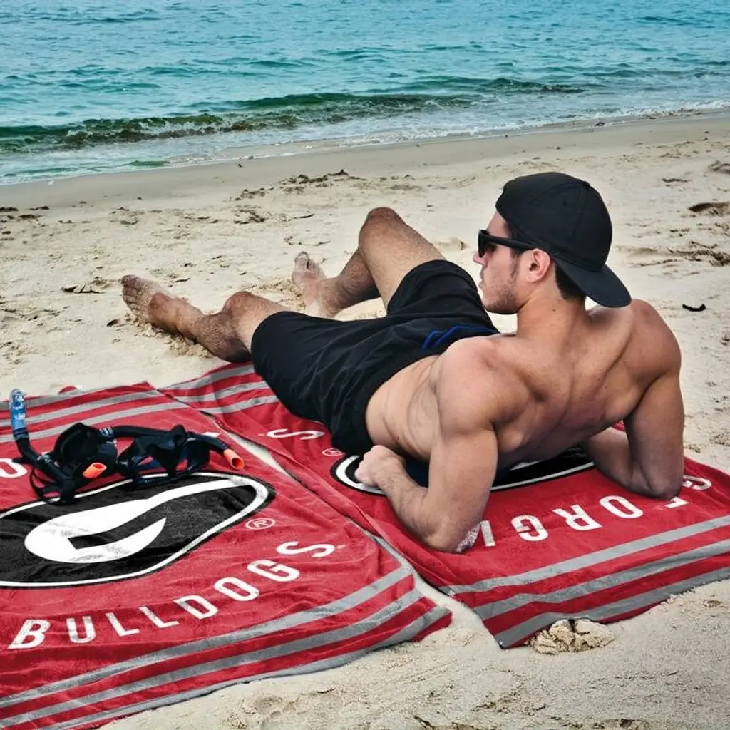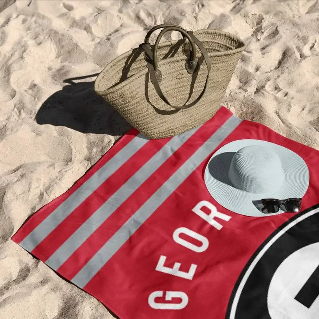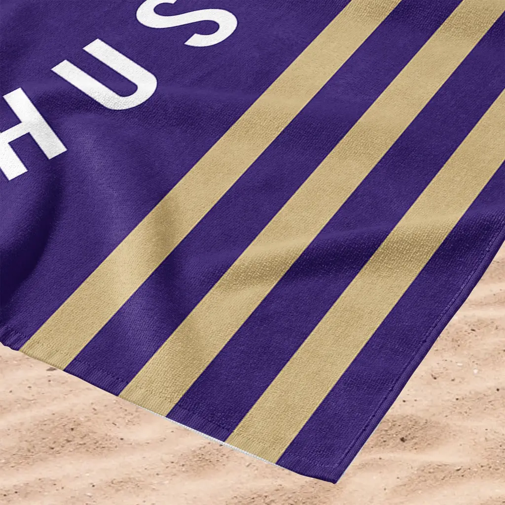 Rep your college team with this impressive and vivid Officially Licensed NCAA "Stripes" Beach Towel. Designed around your favorite college or university, this absorbent 30"x 60" towel has your team's logo and name in the center of the towel, laid out vertically with bold stripes above and below. No one will ever question who you're rooting for when you're drying off after a swim at the pool with this cotton-poly blend towel!Features: