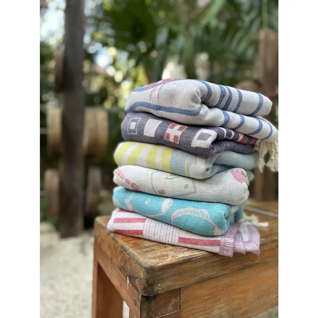 Ramus & Co. Turkish beach towels are woven with ultra-long cotton fibers sourced from the Aegean region of Turkey. Larger than the standard beach towel, this 37” x 71” towel is constructed in a way that maximizes absorbency, softness, and durability. Incredibly lightweight and easy to carry – the perfect accessory for your next adventure. Husband-and-wife team Calvin and Ingrid Ramus founded Ramus & Company in 2019, in New England, USA. Ingrid, the creative designer behind the brand, originates from Mexico, where she cultivated her skills in fashion and textile design. Drawing from her unique and inquisitive perspective on preppy style, Ingrid prolifically designs whimsical yet classic stationery and lifestyle items.