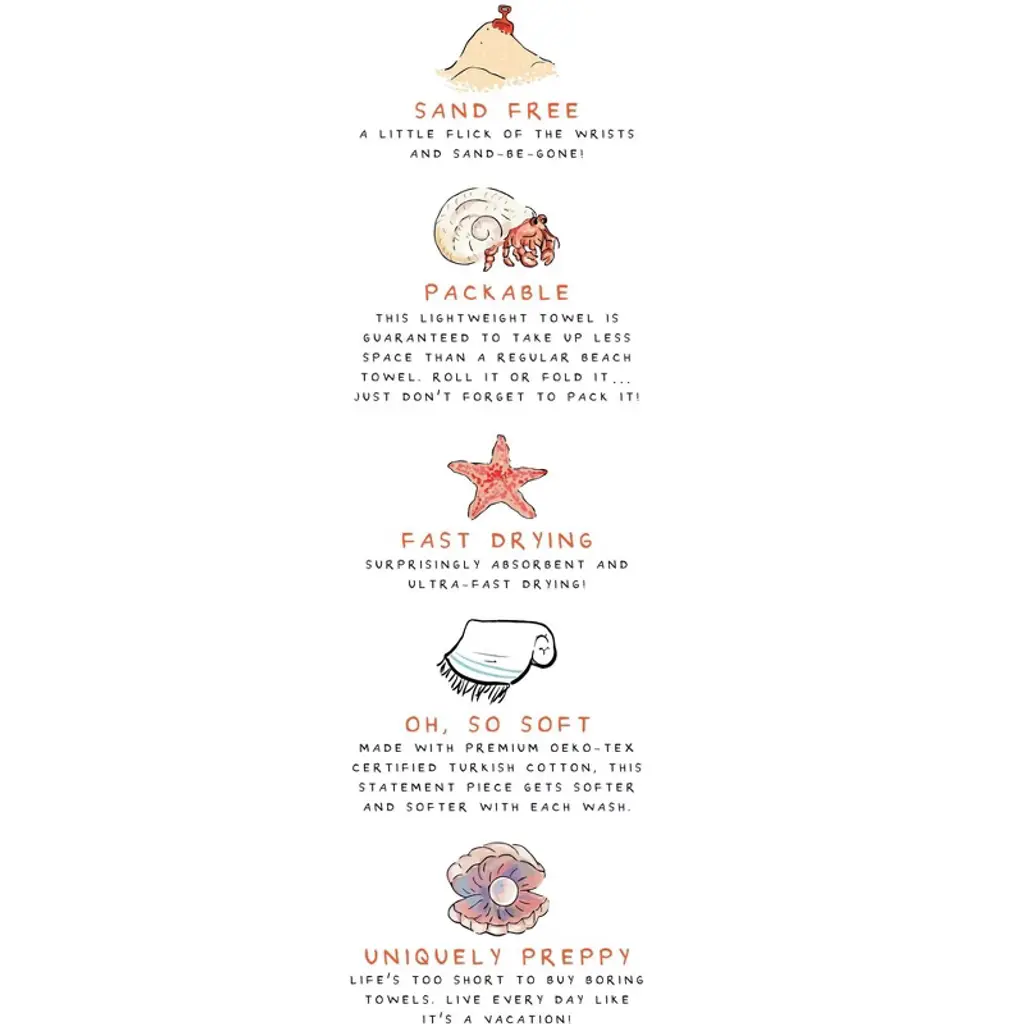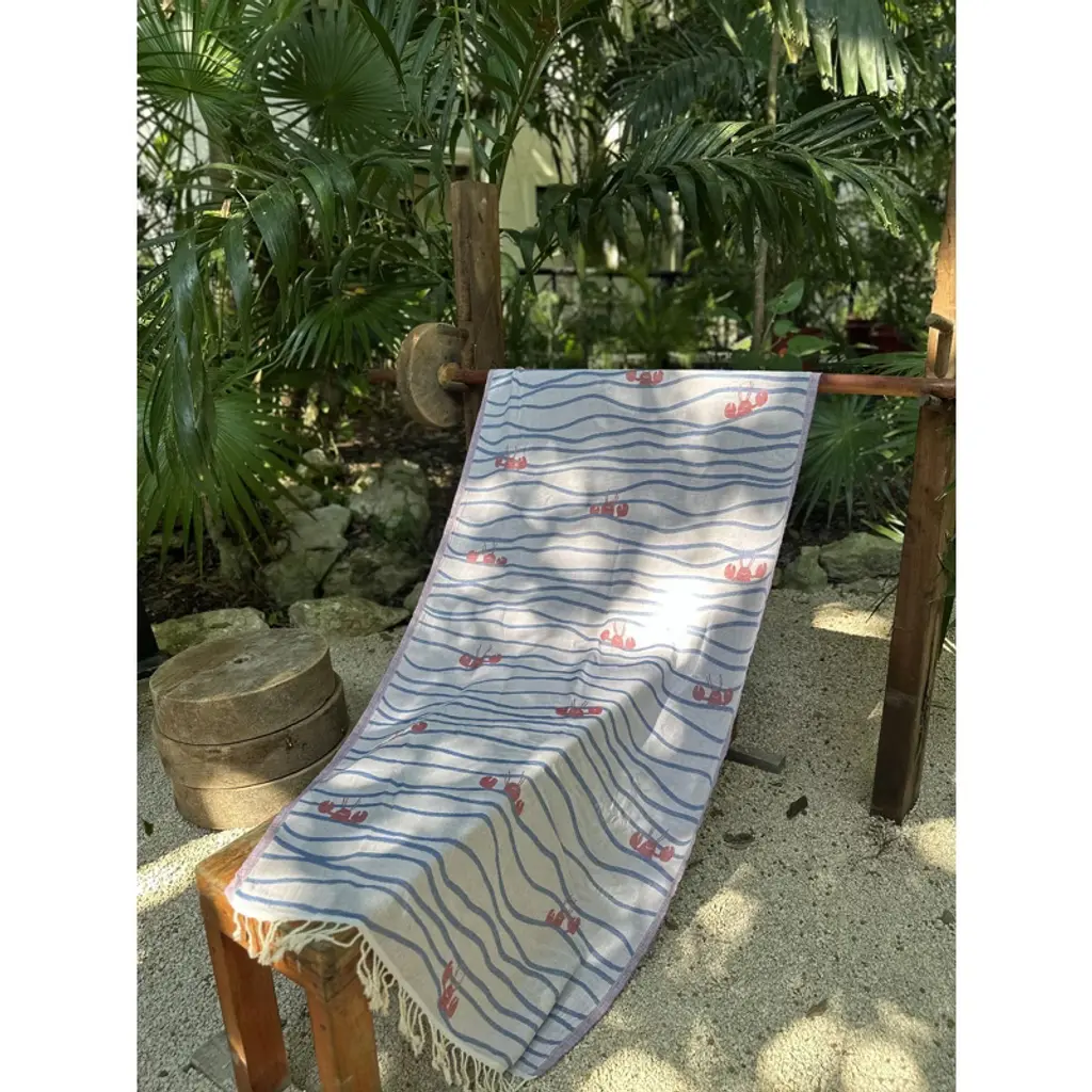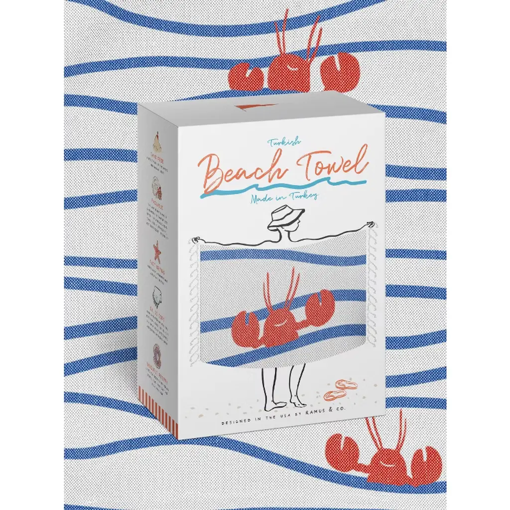 Oversized 37" X 71" Preppy Turkish Beach Towel By Ramus & Co - Lobster N' Waves