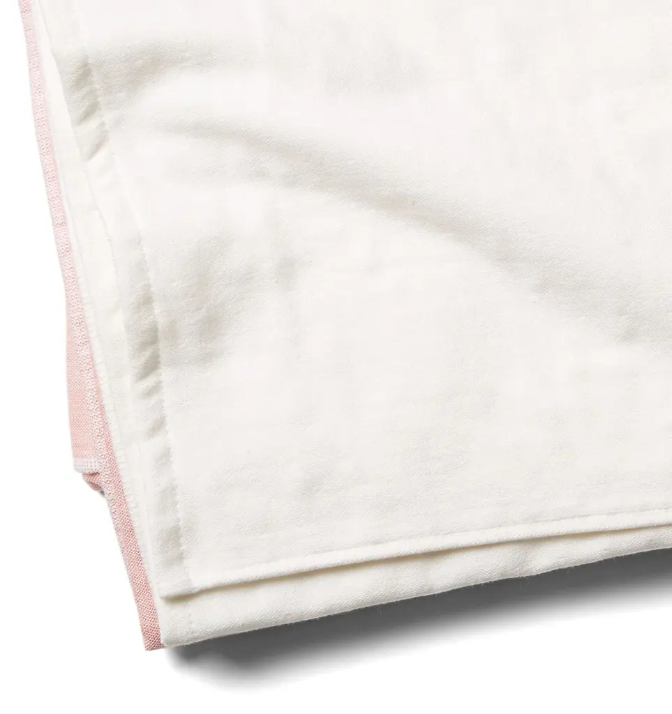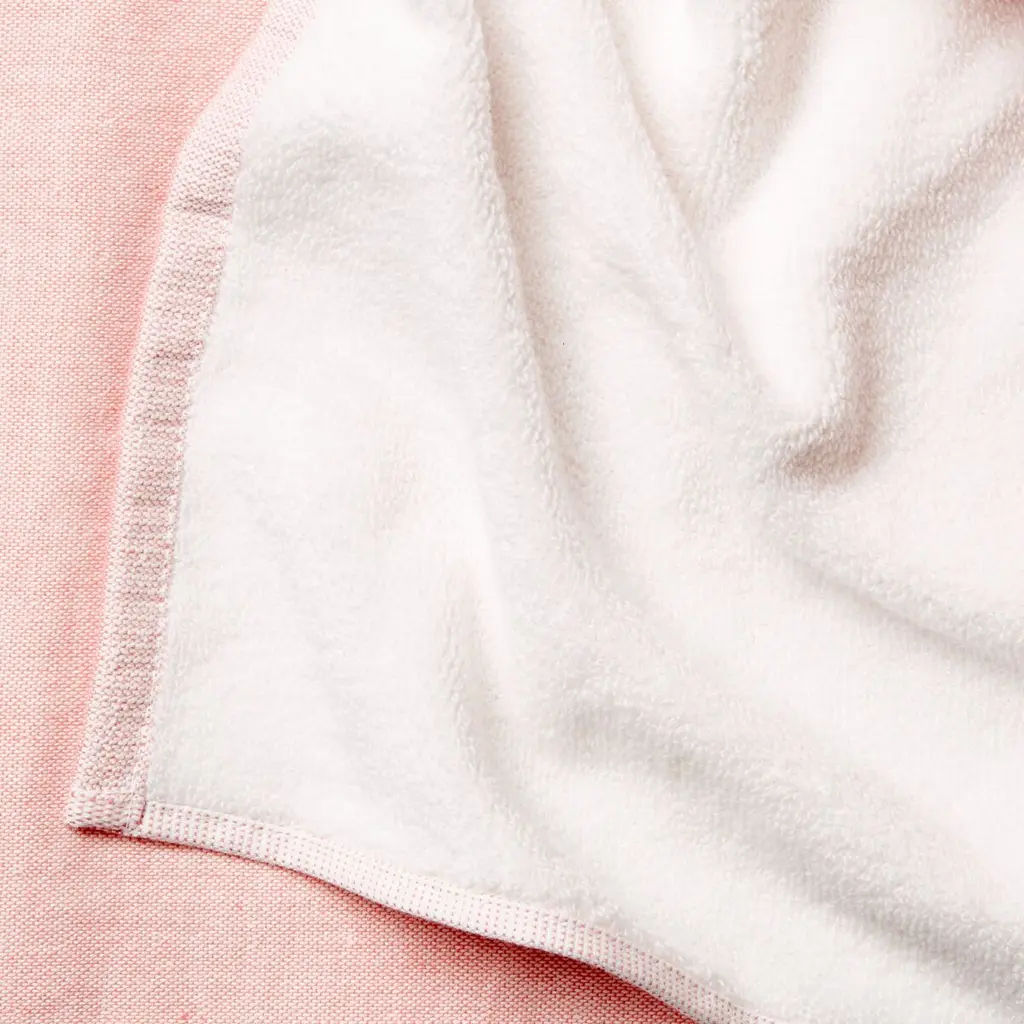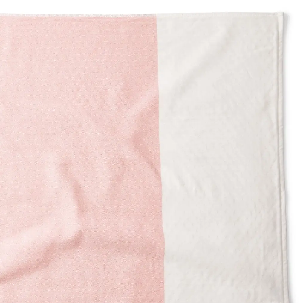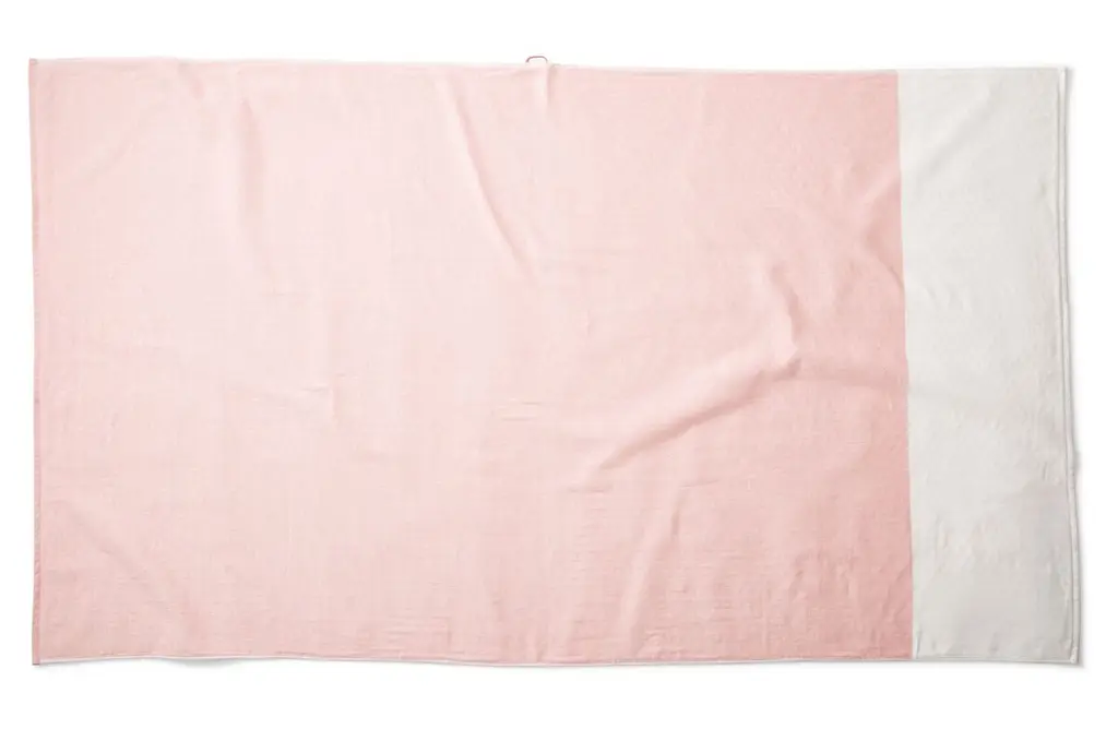 This breezy beach towel, made of lightweight, easy-to-clean cotton, flaunts coral-and-white color-blocking and clean knife edges.
