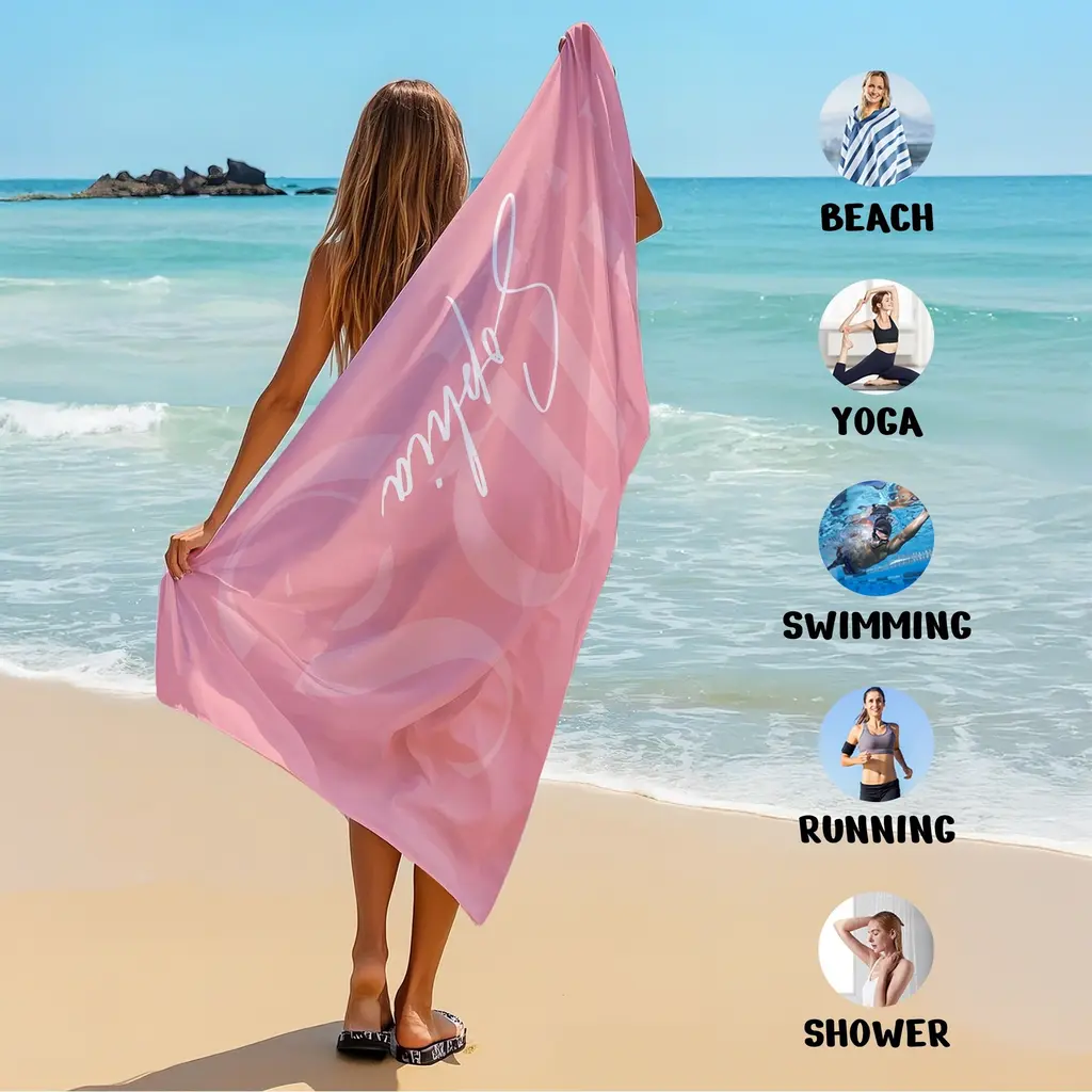 Personalized Beach Towel, Custom Mr & Mrs Beach Towel With Name, Honeymoons Gift For Lover - 30"x60" - Pink Mrs