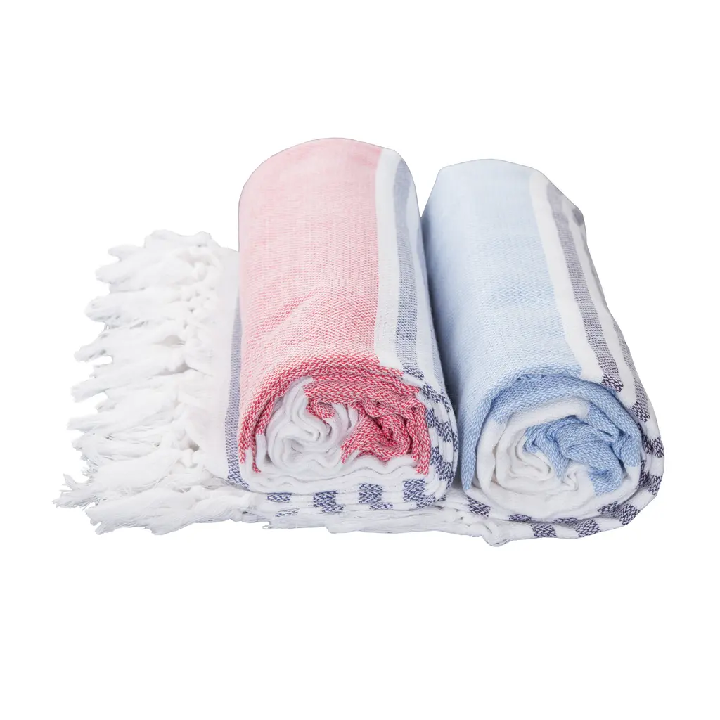 Sunbathe in StyleHead to the beach in style with Porch & Den's Turkish Beach Towels! Made with absorbant 100% cotton and fashionable fringe trim, our beach towels are the perfect companion for those hot days by the ocean. Keeping you in mind, we made these extra large in size, measuring 70" x 40". Our Turkish towels are available in multiple colors and styles, so you can find one that speaks to you. Of course, there are many other ways to use these high-quality towels; whether by the poolside, at a picnic, as a throw blanket, or our favorite, as a yoga mat for your workouts, they will exceed your expectations. Pamper yourself or give these as a gift to your friends or loved ones! Our beach towels make the perfect Christmas present, holiday gift, birthday present, and Mother's Day gift.Product Features HIGH QUALITY MATERIAL - Made With absorbant, 100% Cotton THE PERFECT SIZE - Our Turkish beach towels measure 70" in length and 40" in width, great for most adults, perfect for that beach-side vacation! VARIETY OF USES - Not only are they great for laying by the beach, but also pools, picnics, as a throw blanket, exercise towel, or yoga towel. MANY STYLES TO CHOOSE FROM - Our beach towels feature multiple styles and colors to brighten your day, and stylish fringe trim. Just search Porch & Den Turkish Towels! We have something that fits your taste! THE PERFECT GIFT - Pamper yourself or gift these to your friends and family! They make the perfect Christmas gift, holiday present, housewarming or birthday gift, and Mother's Day present.