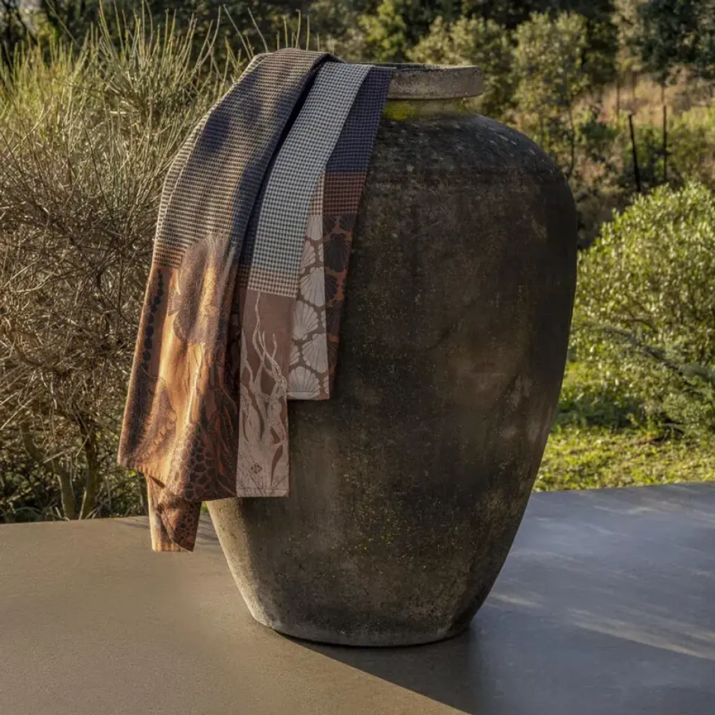 We explore the seabed on a deep blue, black and brown with a masculine look for an elegant dive. Since 1888, Le Jacquard Francais has created a collection of table linens without equal. Weavers, warp beamers, knotters and other specialists work in harmony to perfect the weaves and colors of all of their linens. Classic Le Jacquard Francais linens are characterized by using framed woven patterns to create timeless tablecloths, napkins, placemats and table runners that will beautify your tables for many years. Le Jacquard Francais coated tablecloths are made of 100% cotton weave with long fibers. They are waterproof and stain-resistant thanks to a patented and exclusive acrylic coating that withstands washing. Newly introduced, LJF by Le Jacquard Francais is a more casual line of contemporary looks that mixes colors and patterns and plays with graphics. Practical and easy to use, these tablecloths will stand up to frequent use in the kitchen or patio.