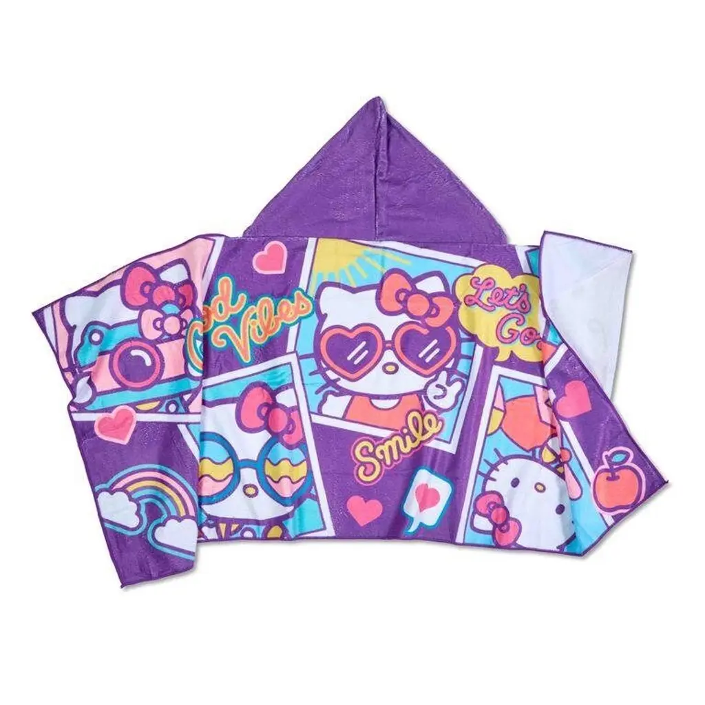 Brighten up your beach days with the Sanrio Hello Kitty Microfiber Beach Towel. This towel features a colorful pattern of Hello Kitty. Made from soft and absorbent microfiber, it's perfect for drying off after a swim or relaxing on the sand. The vibrant design and playful graphics make it a fun addition to any beach outing. Surprise a Hello Kitty fan with this cheerful towel! It's an ideal gift for birthdays, holidays, or just because. This delightful towel will bring smiles and fun to every beach trip.Features: