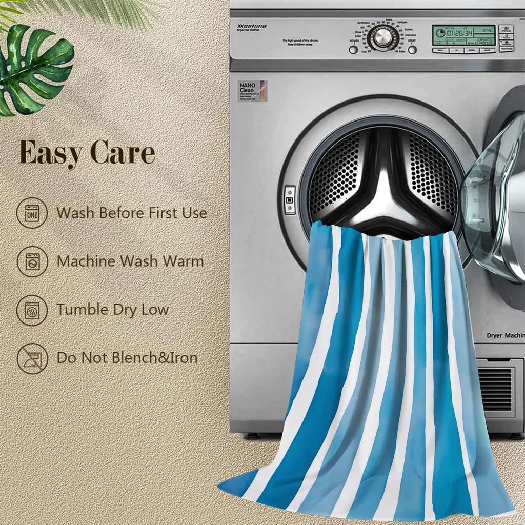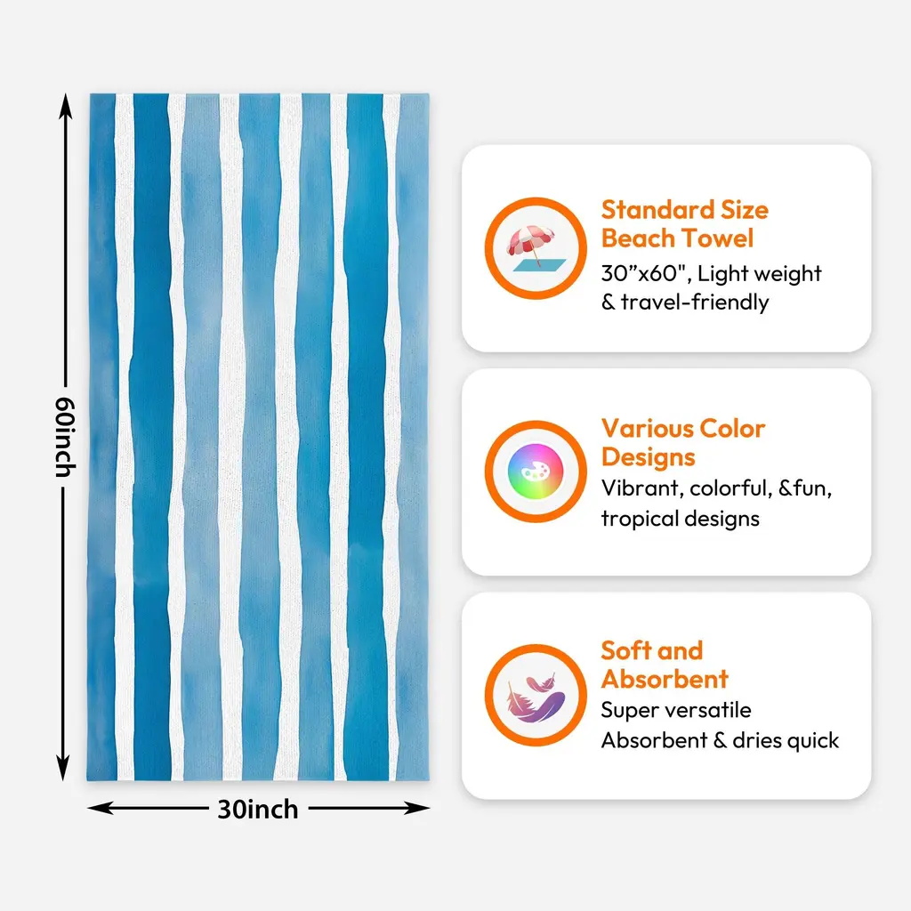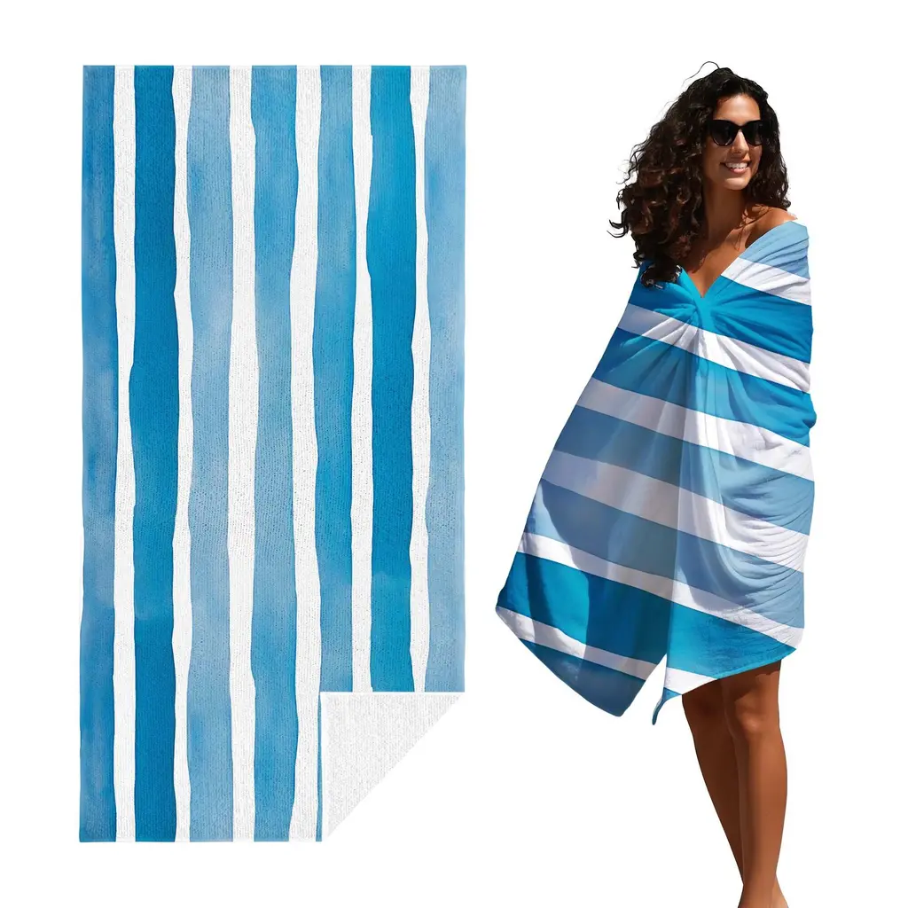 Stripe Beach Towel Pool Towel Quick Dry Absorbent Towels For Swimming 30" X 60" - Aqua