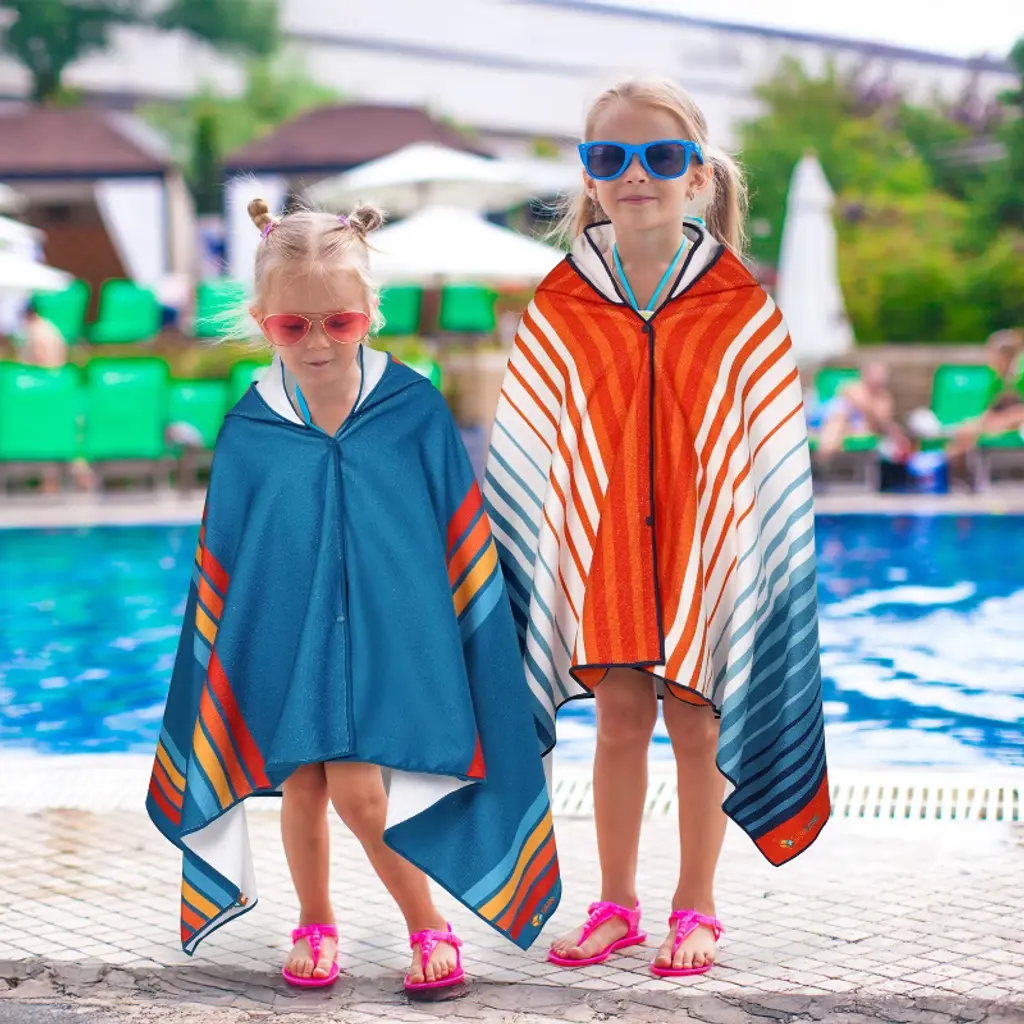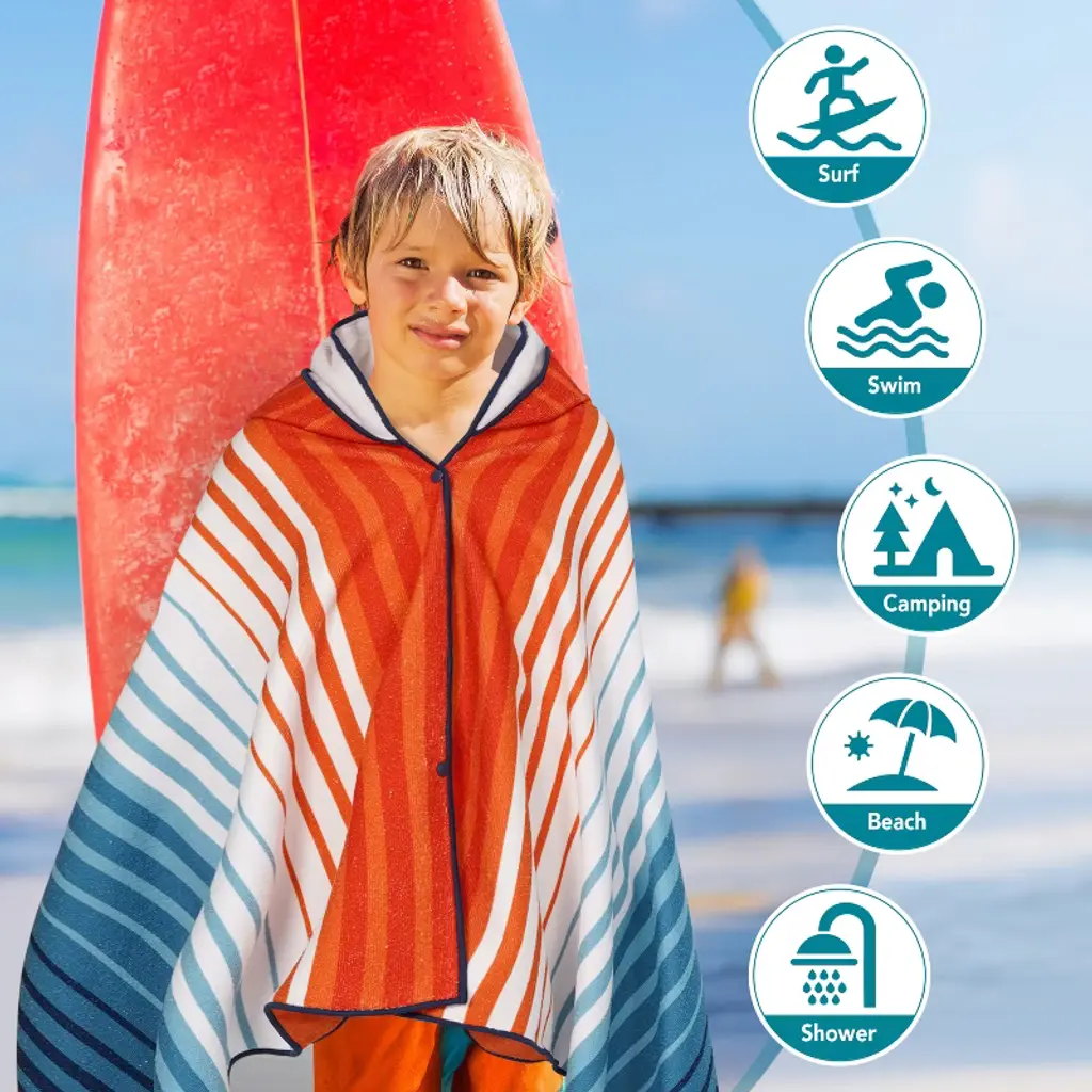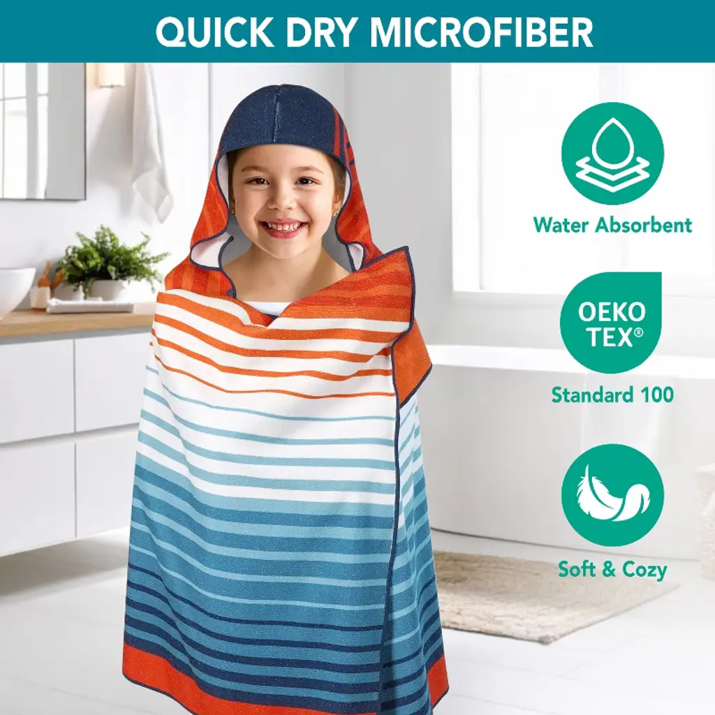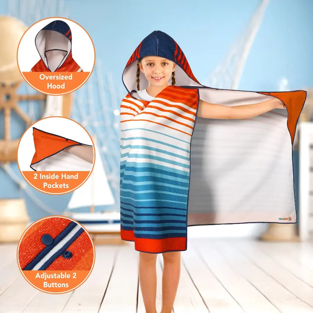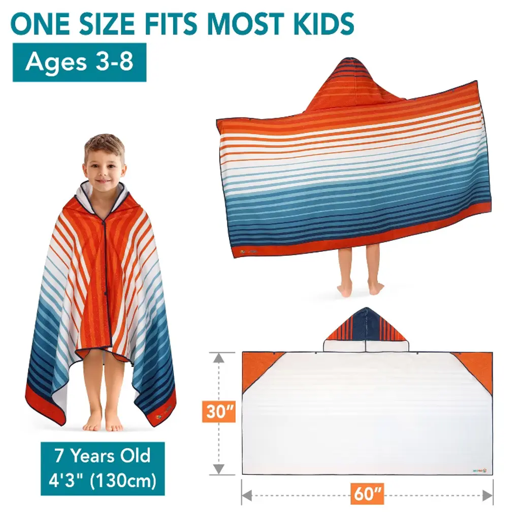 Sun Cube Hooded Towel For Kids, Absorbent Quick Dry Toddler Beach Towel, Swim Surf Wrap For Shower Pool, Boy Girl Age 3-9 (Orange Stripe, Kids (3-9))