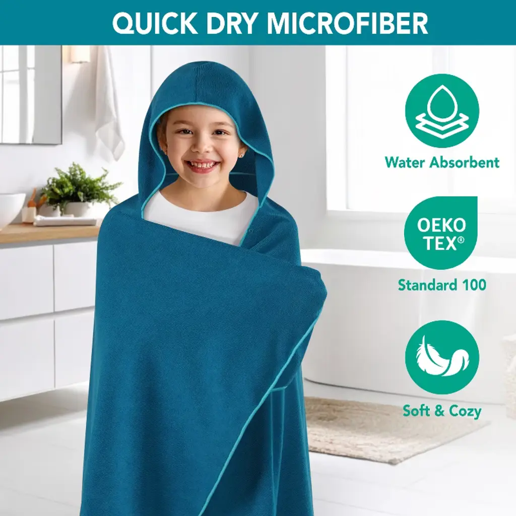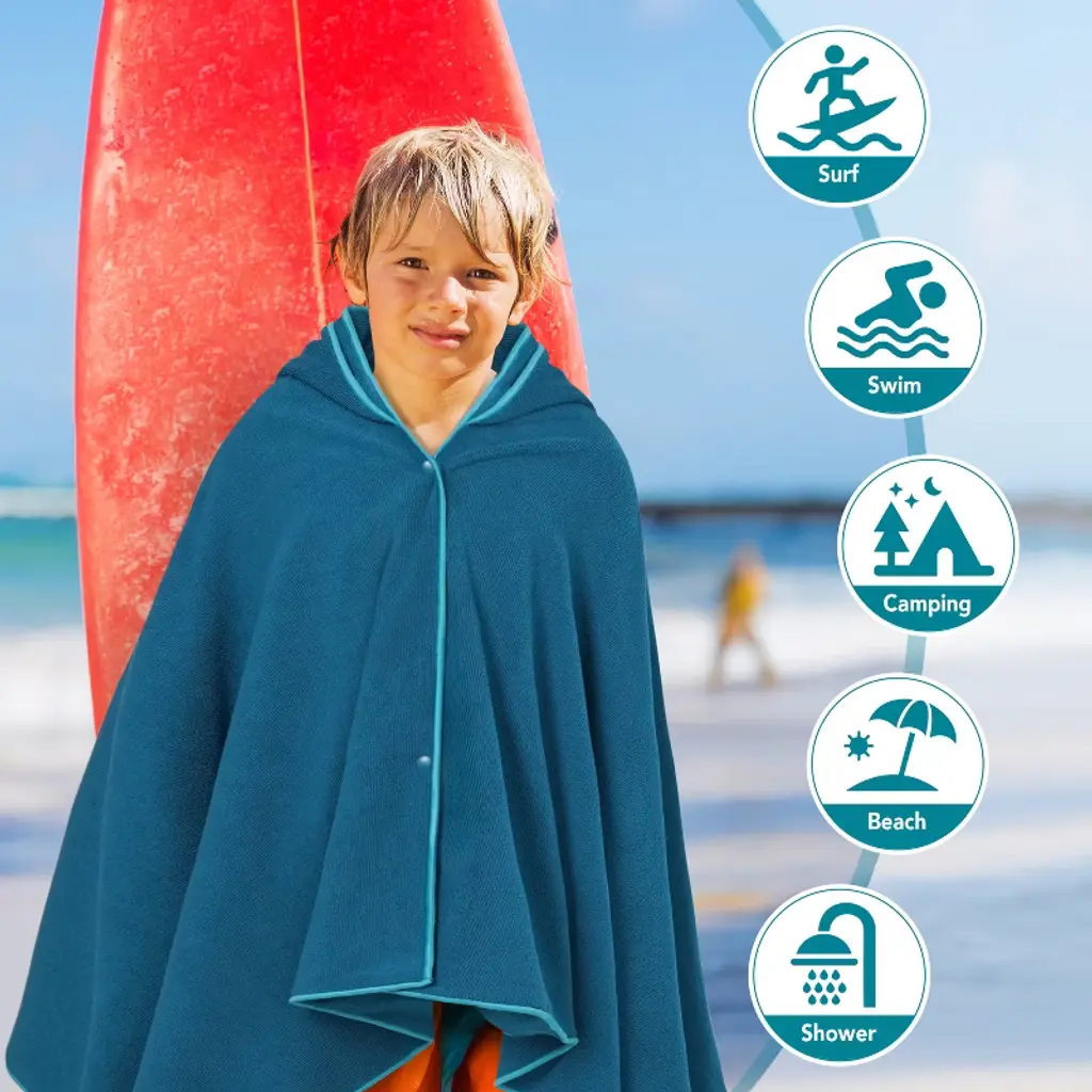 Sun Cube Hooded Towel For Kids, Absorbent Quick Dry Toddler Beach Towel, Swim Surf Wrap For Shower Pool, Boy Girl Age 3-9 (Sea Blue, Kids (3-9))