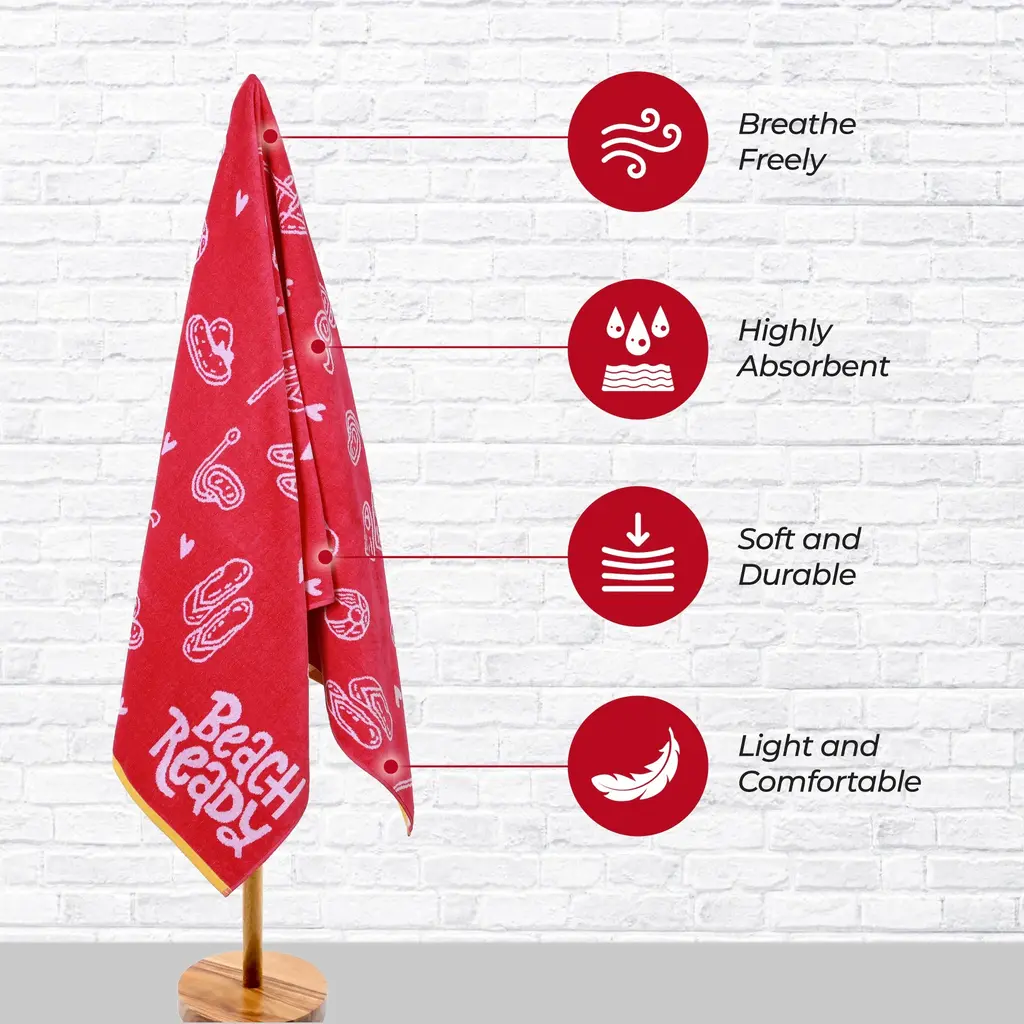 Wrap yourself in the Superior Bahama Cotton Beach Towel for the perfect coverage and ultimate comfort at the beach or pool. Crafted from Cotton, these towels are highly absorbent to help get you dry quickly. The extra large size of each towel is longer than ordinary beach towels and covers more of you to help keep you cozy. These brightly colored towels are easy to fold and easy to pack. This beach towel features absorbent terry on one side and plush velour on the reverse that repels water and sand for a faster drying time, maximum absorbency, and plush texture. Displaying an assortment of beach accessories, these beach ready towels are available in blue and pink color options to match your summer look.Features: